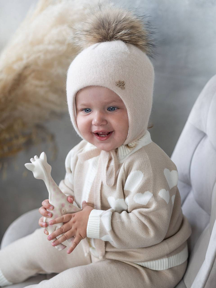 Состав 40% Шерсть мериноса, 30% Полиамид, 20% Кашемир, 10% ПАН,подкладка: 95% Хлопок, 5% Эластан, утеплитель: Термофин 100, помпон: фрост