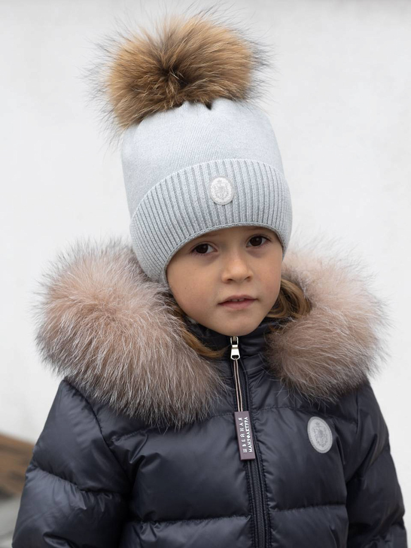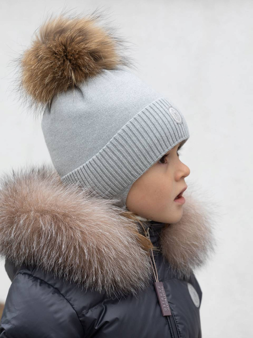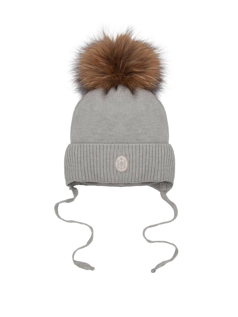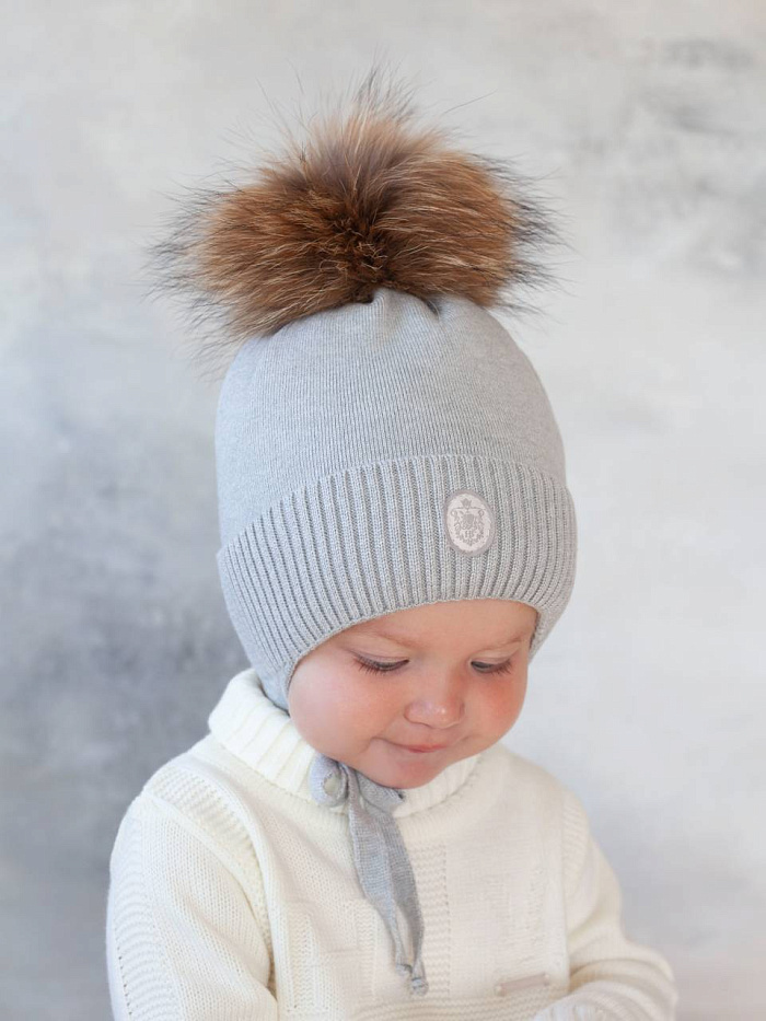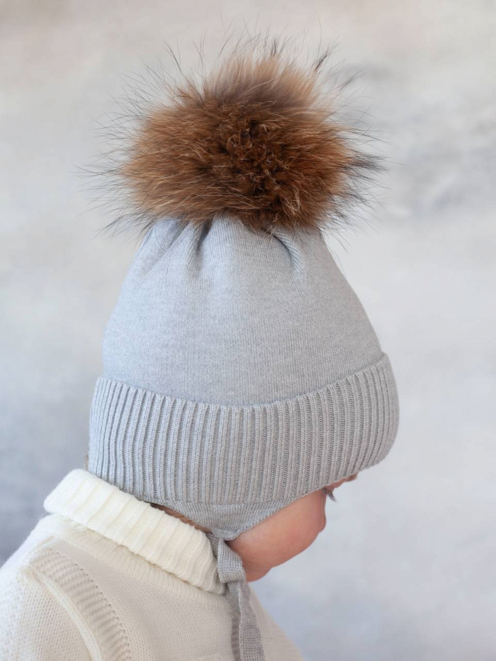 Шапка зимняя с утеплителем с меховым помпоном на завязках, р. 52-54