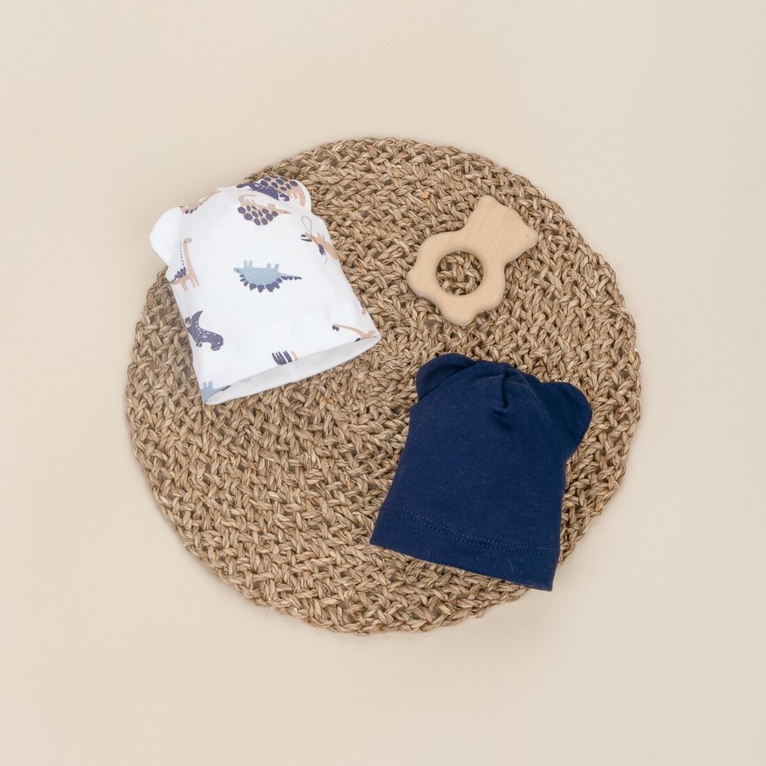 Шапочка отворотом и ушками "Малыш Хрустик", р. 3-6 мес.