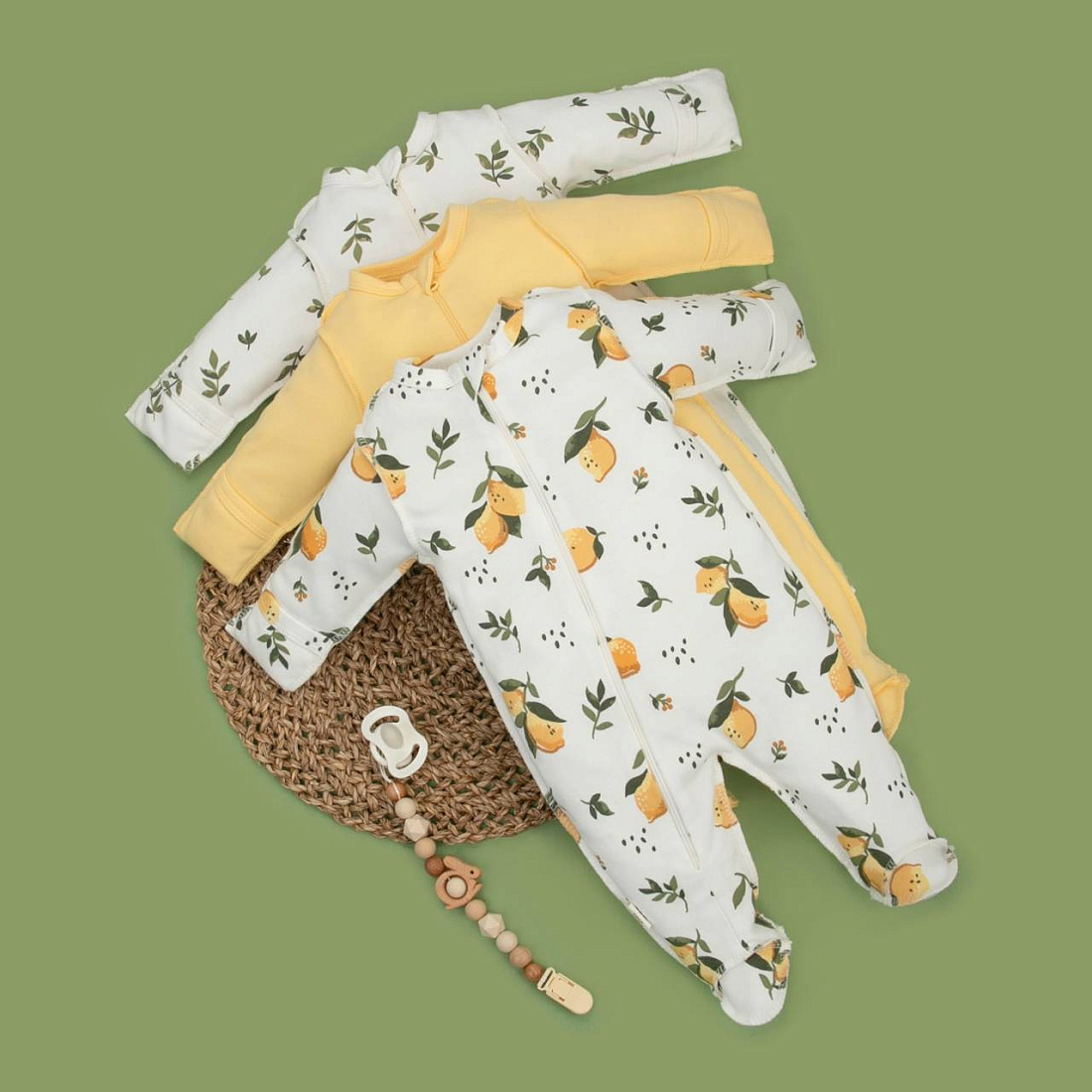 Комбинезон слип на молнии "Лимончики", 3 шт, цв. разноцветный