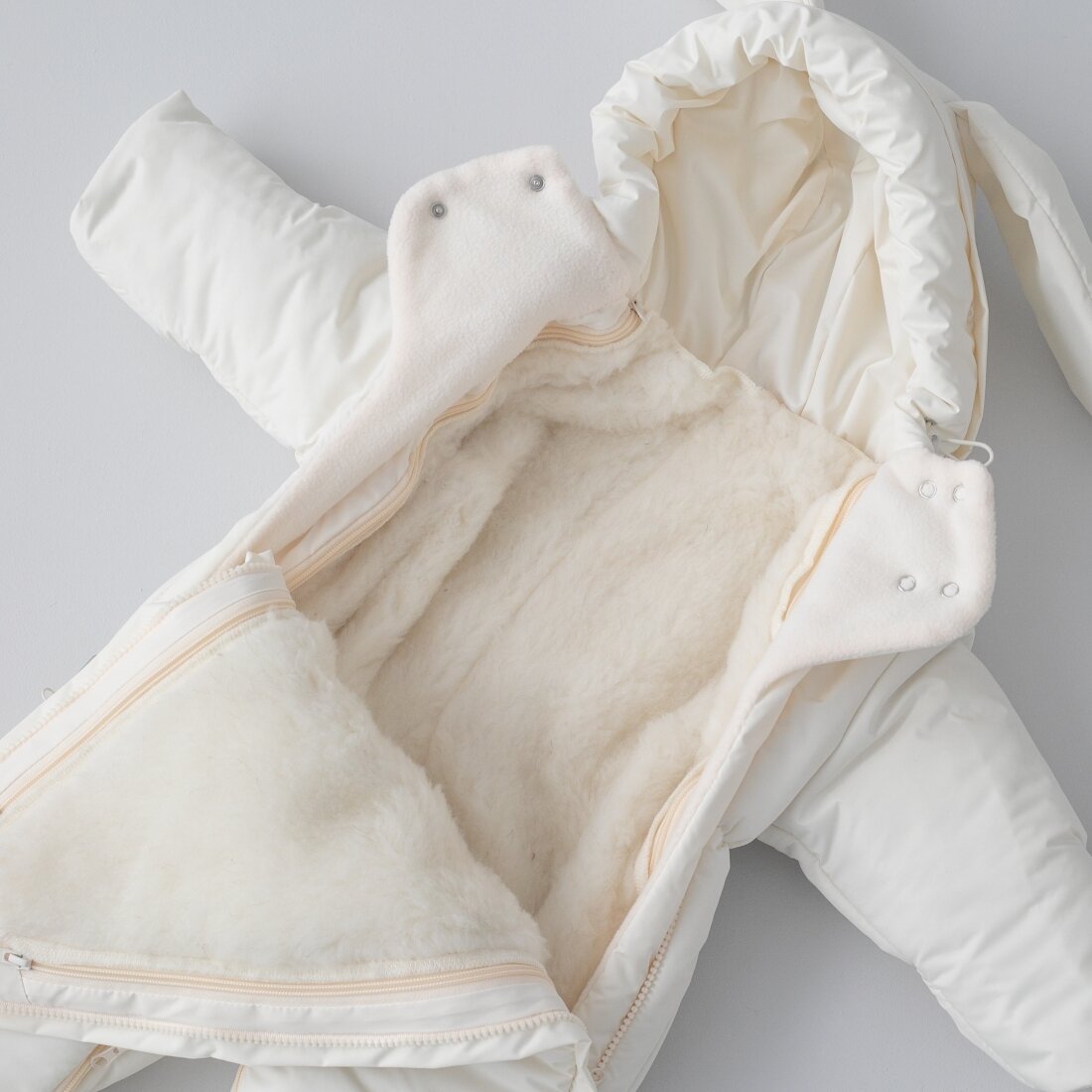 Меховая подстежка у комбинезона полностью отстегивается и комбинезон становится демисезонным или зимним по желанию и погоде.