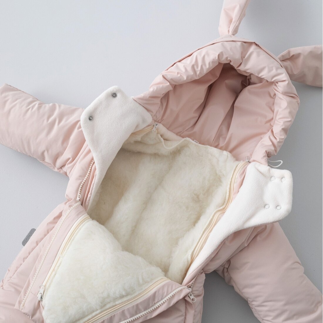 Меховая подстежка у комбинезона полностью отстегивается и комбинезон становится демисезонным или зимним по желанию и погоде.