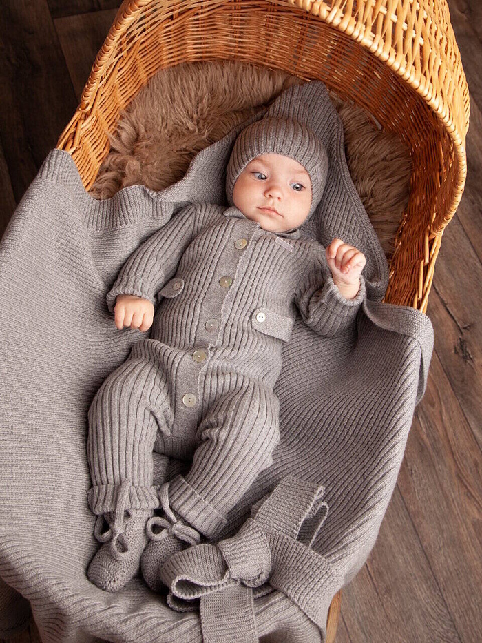 Может ли одежда расти вместе с вашим малышом? Мы говорим ДА! МЕГАновинка из новой коллекции шерсти мериноса - комбинезон с особенной структурой вязки «Фетучини» и идеальным составом 100% шерсти мериносов. Это как лапша, только ещё круче. Благодаря уникальному граммажу пряжи и технике вязки, комбинезон прекрасно тянется, но в тоже время имеет удивительное свойство - держать форму! А это значит, можно приобрести комбинезон с запасиком и отходить в нем целый сезон. Это то, что надо для малышей, ведь они у нас так быстро растут.