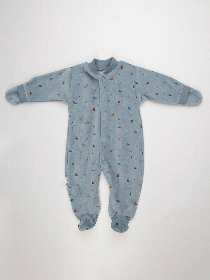 Комбинезон велюр с принтом, цв. синий/динозаврики, р. 80