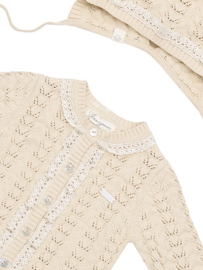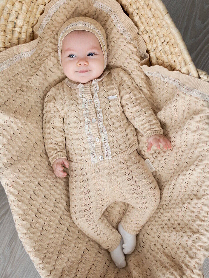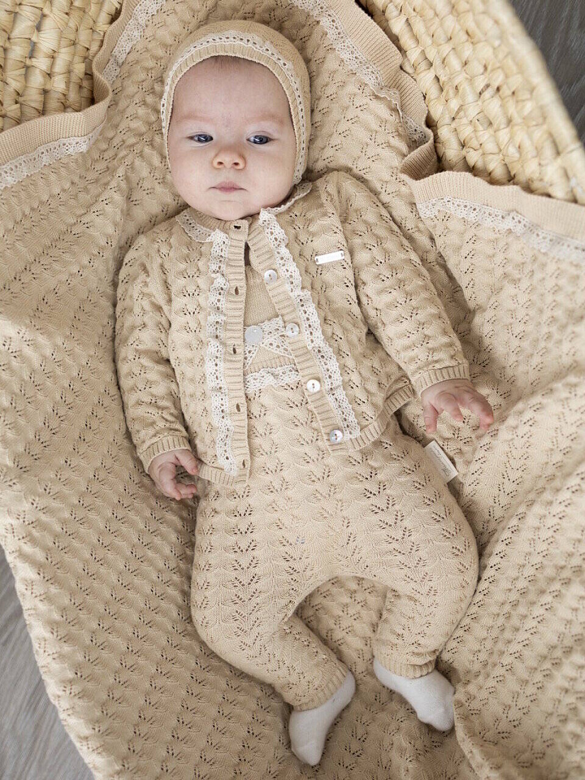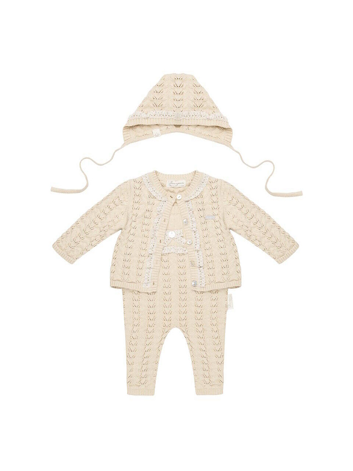 Кофта+шапка+полукомбинезон, цв. натуральный, р. 0-3 мес