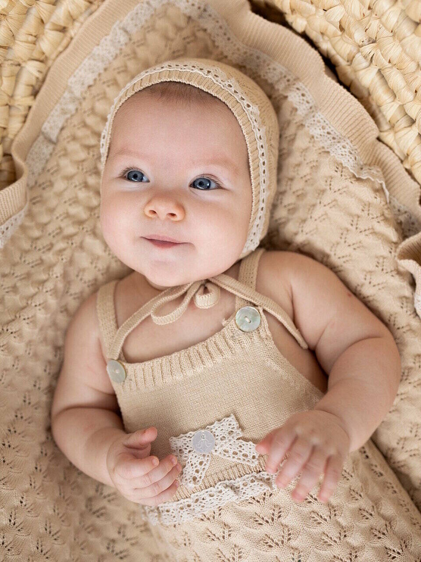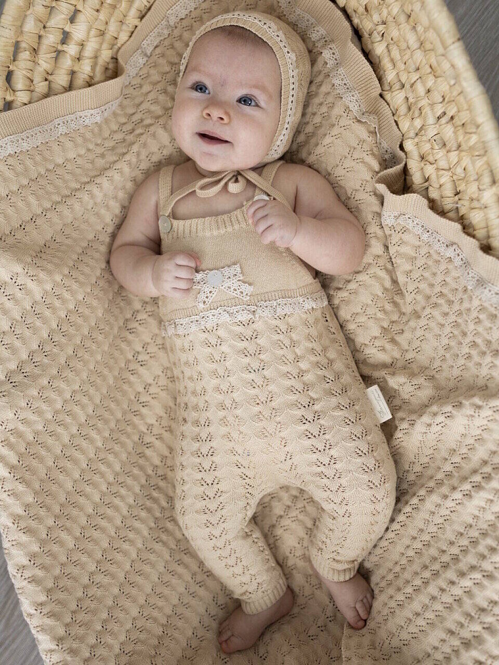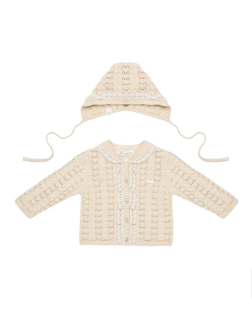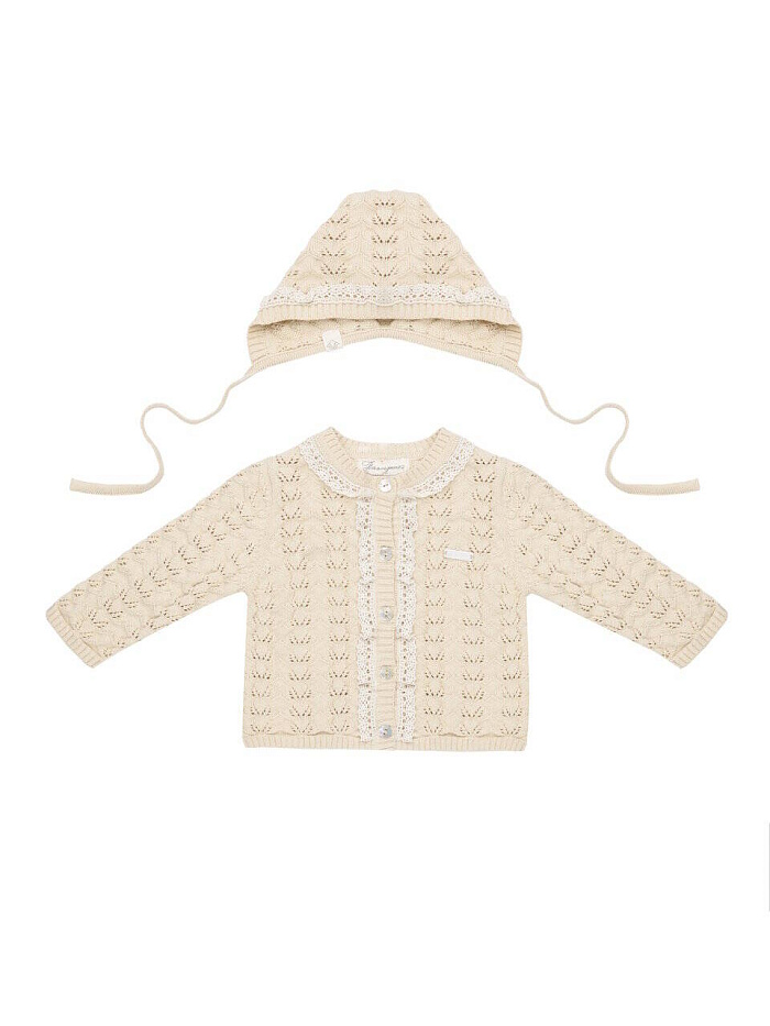 Кофта+шапка+полукомбинезон, цв. натуральный, р. 0-3 мес