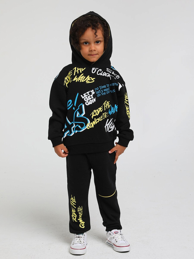 Комплект для мальчика: худи с капюшоном и брюки в спортивном стиле.