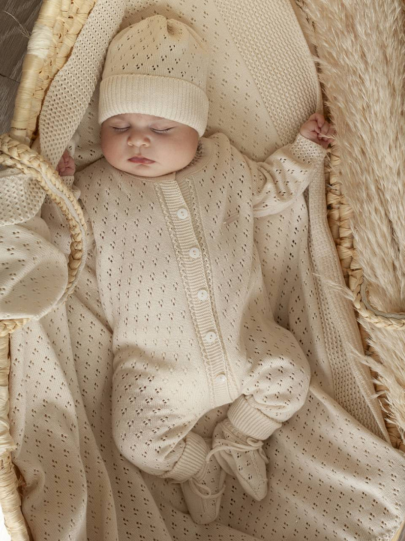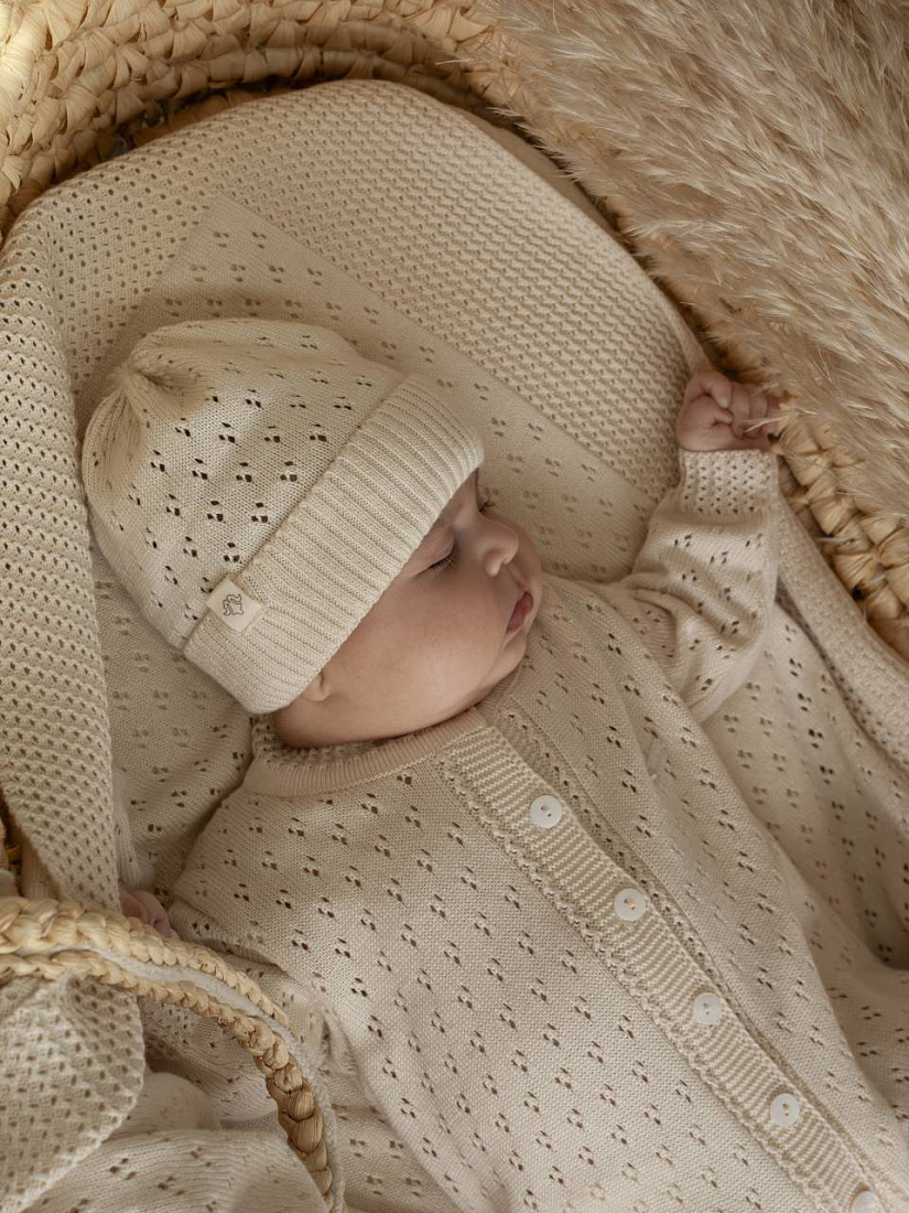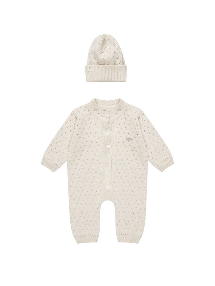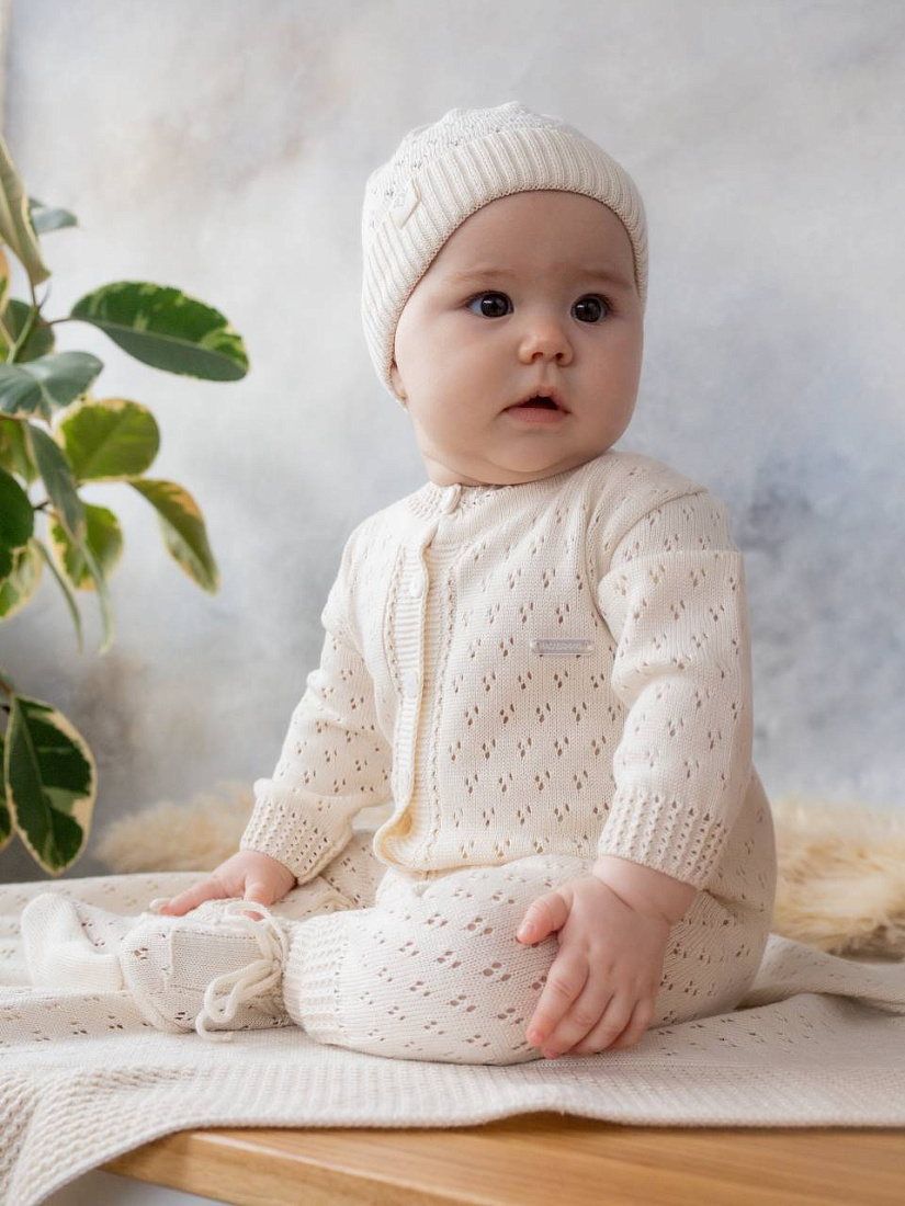 Комплект "Утренняя роса" : комбинезон + шапка, цв. натуральный, р. 0-3 мес