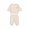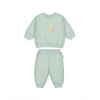 Пуловер и брюки для мальчика выполнены из мягкого, приятного на ощупь материала, что обеспечивает комфорт при носке в течение всего дня. Светлый пастельный оттенок делает комплект универсальным и легко сочетаемым с другой одеждой для мальчика. Пуловер отличается свободным кроем с эластичными манжетами на рукавах и по нижнему краю, что помогает сохранять тепло и обеспечивает удобство движений для мальчика. На груди пуловера расположен небольшой яркий принт с изображением жирафа и надписью, добавляющий образу оригинальность и подчеркивающий стиль для мальчика. Брюки имеют эластичный пояс и манжеты на штанинах, что гарантирует хорошую посадку и не сковывает движения ребенка. Материал изделия выглядит плотным и износостойким, подходит для активного образа жизни. Дизайн комплекта лаконичный, без лишних деталей, что делает пуловер и брюки практичным выбором для повседневной носки для мальчика.