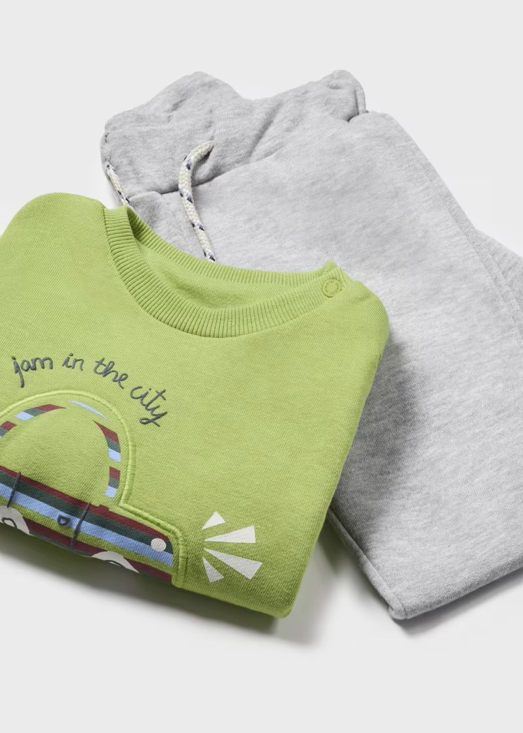 Пуловер, брюки, цв. зеленый/св.серый, р. 12 мес.