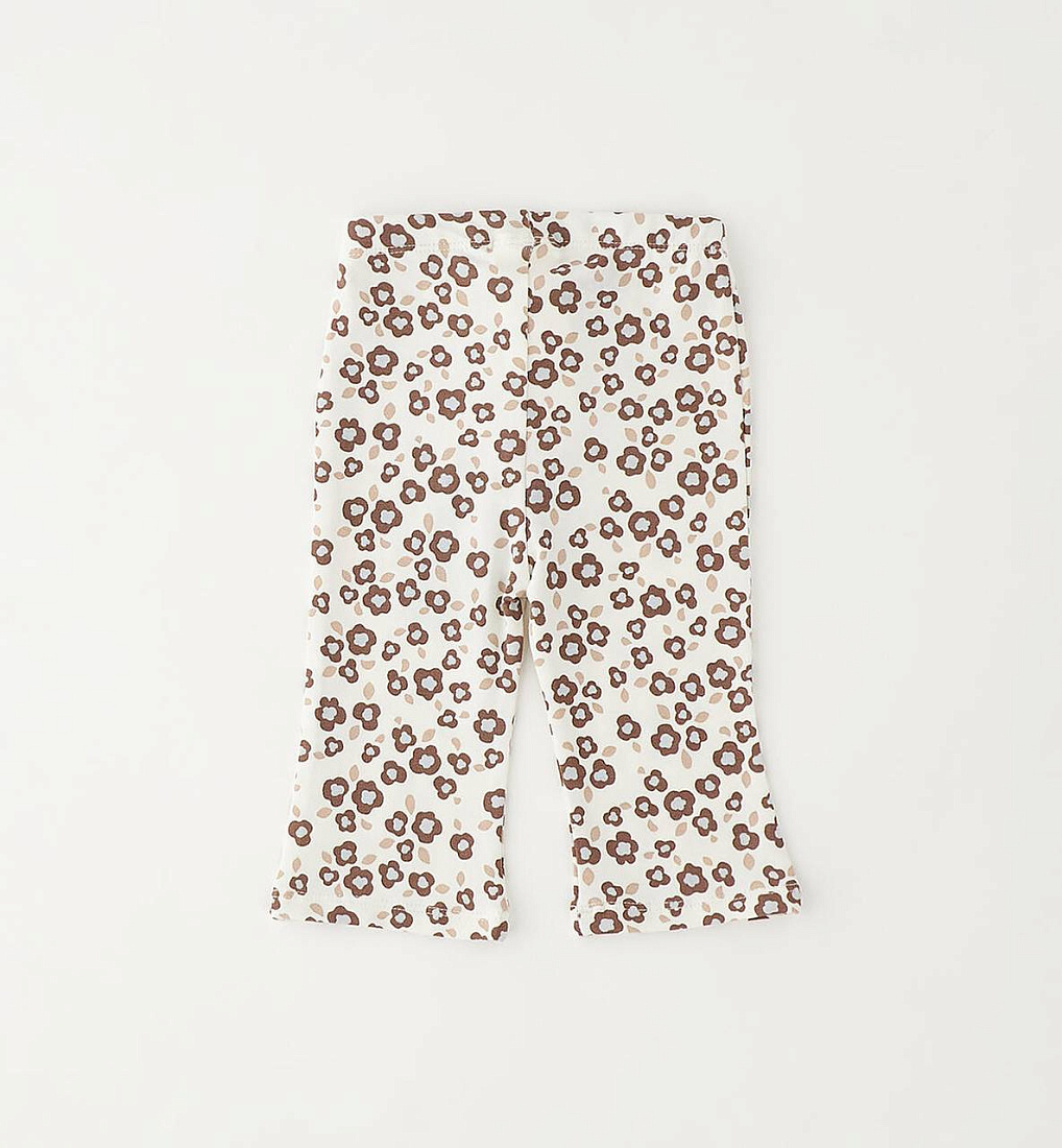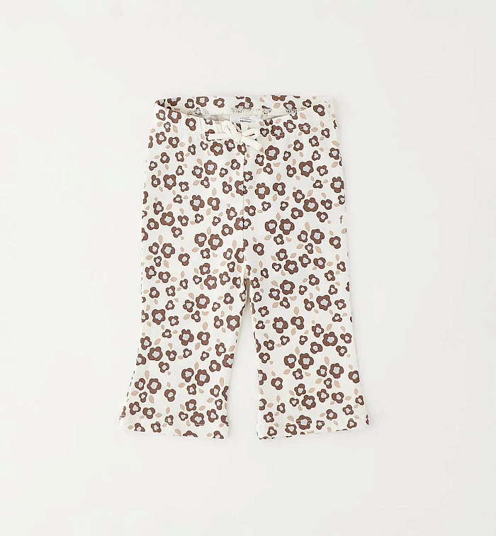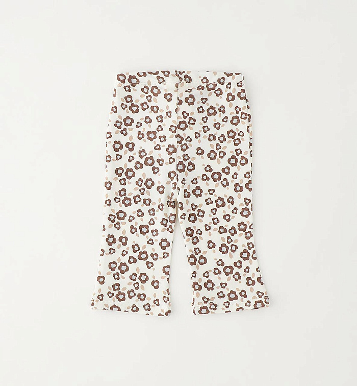 Леггинсы iDO для девочек от 12 до 24 месяцев из эластичного трикотажа с узором по всей поверхности. Эластичный пояс с аппликацией в виде банта. Слегка расклешенные брюки.