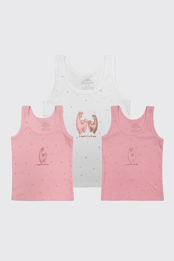Майки разноцветные для девочек на широких бретельках. Идеальная посадка обеспечивает максимальный комфорт при носке. Чтобы ткань не вытягивалась и не деформировалась при носке, в состав хлопка добавлен эластан (5%).