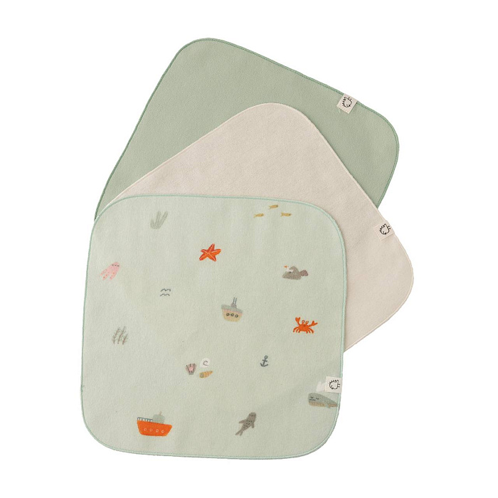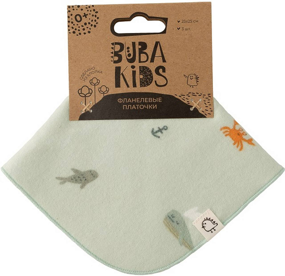 Платочки фланелевые BUBA KIDS, 3 шт., цв. Тихий океан/речная вода/сливочный