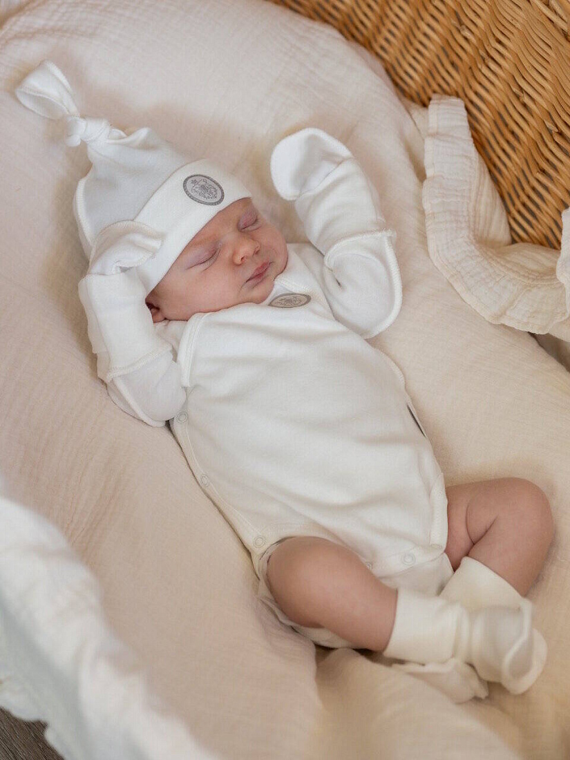 Удобные рукавички для новорожденных из органического хлопка. Мягкие, эластичные манжеты надежно фиксируются на ручке малыша. Выполнены швами наружу. Рукавички защитят новорождённого от случайных повреждений острыми ноготками, а также будут согревать маленькие ручки.