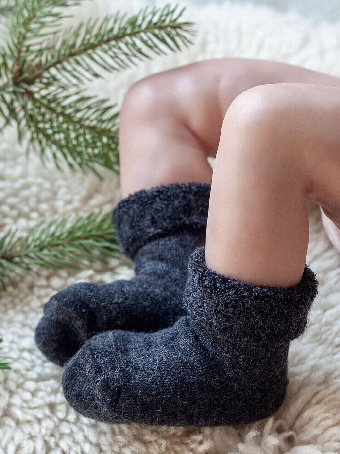 Термобелье от НаследникЪ Выжанова производится только из натуральной шерсти тонкорунных мериносов, поэтому все изделия очень мягкие, идеально подходят для детей с рождения и даже на голое тельце малыша.Термоноски для новорожденных - удобная деталь для создания ребенку комфортных условий: регулирует температуру тела и отлично отводят влагу. Носочки провязаны шерстяными петлями, которые создают дополнительную воздушную прослойку, а значит обеспечивают дополнительное тепло. Мягкие, приятные на ощупь, широкая резинка не пережимает ногжку, делая ношение комфортным для ребенка.