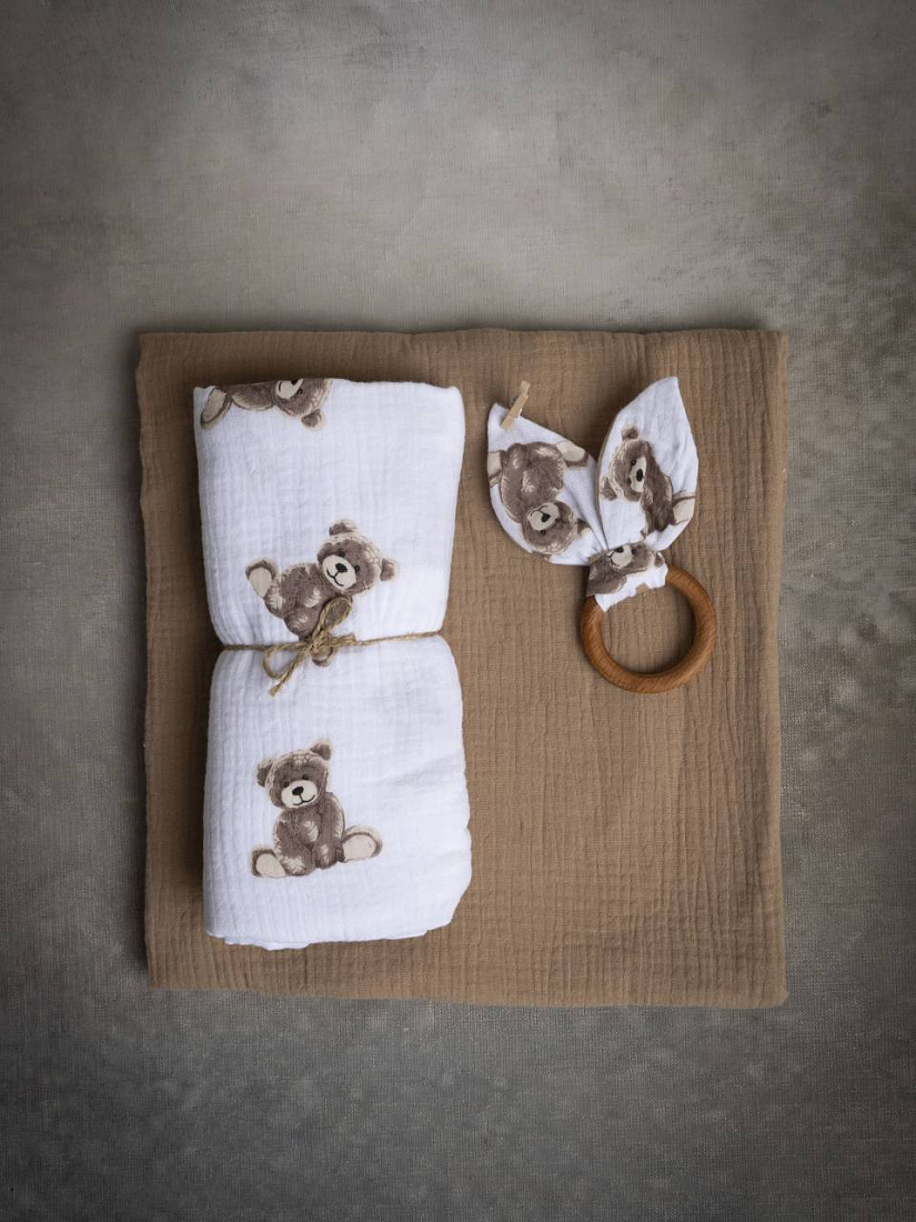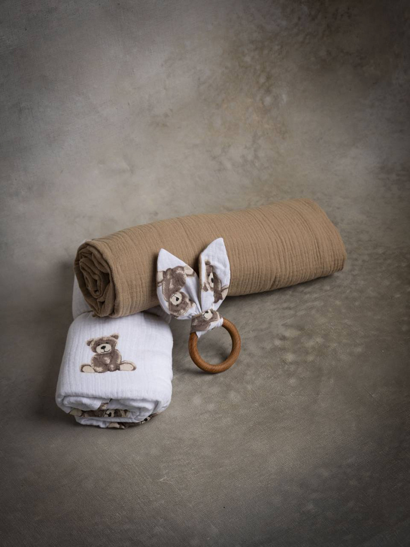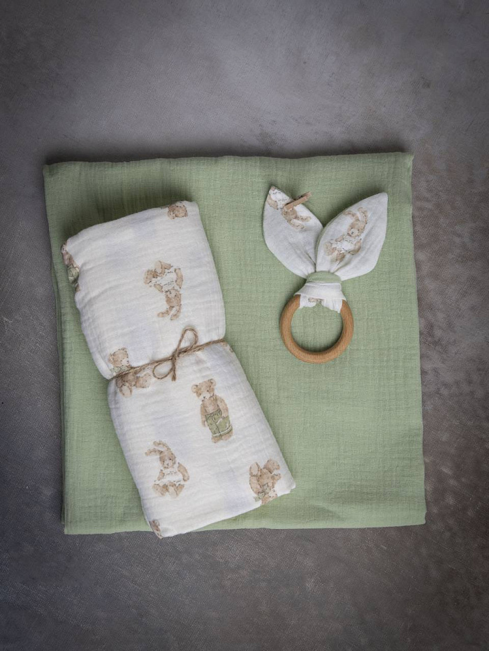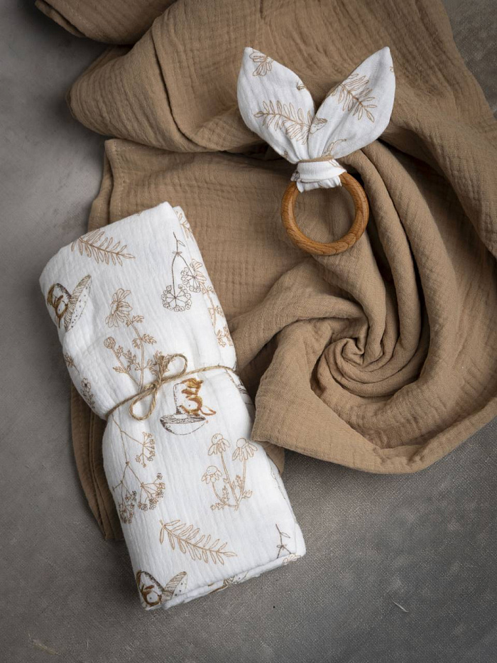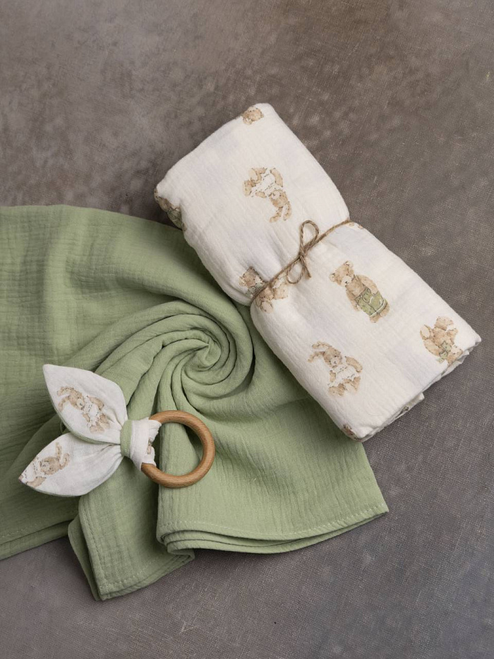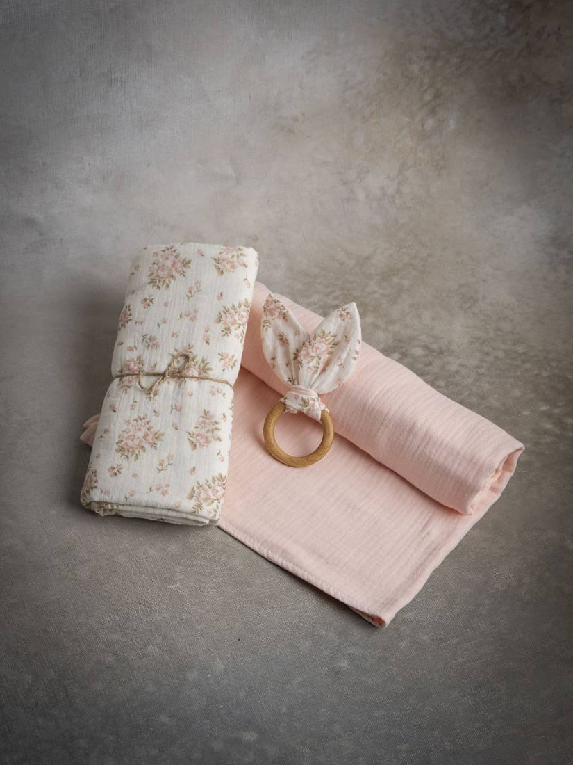Бокс №5 (2 пеленки, погремушка текстильная) муслин, цв. разноцветный