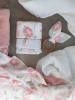 Бокс №9 (4 предмета: плед, 2 пелёнки, ушки-шуршалки), цв. песочный/экрю с принтом