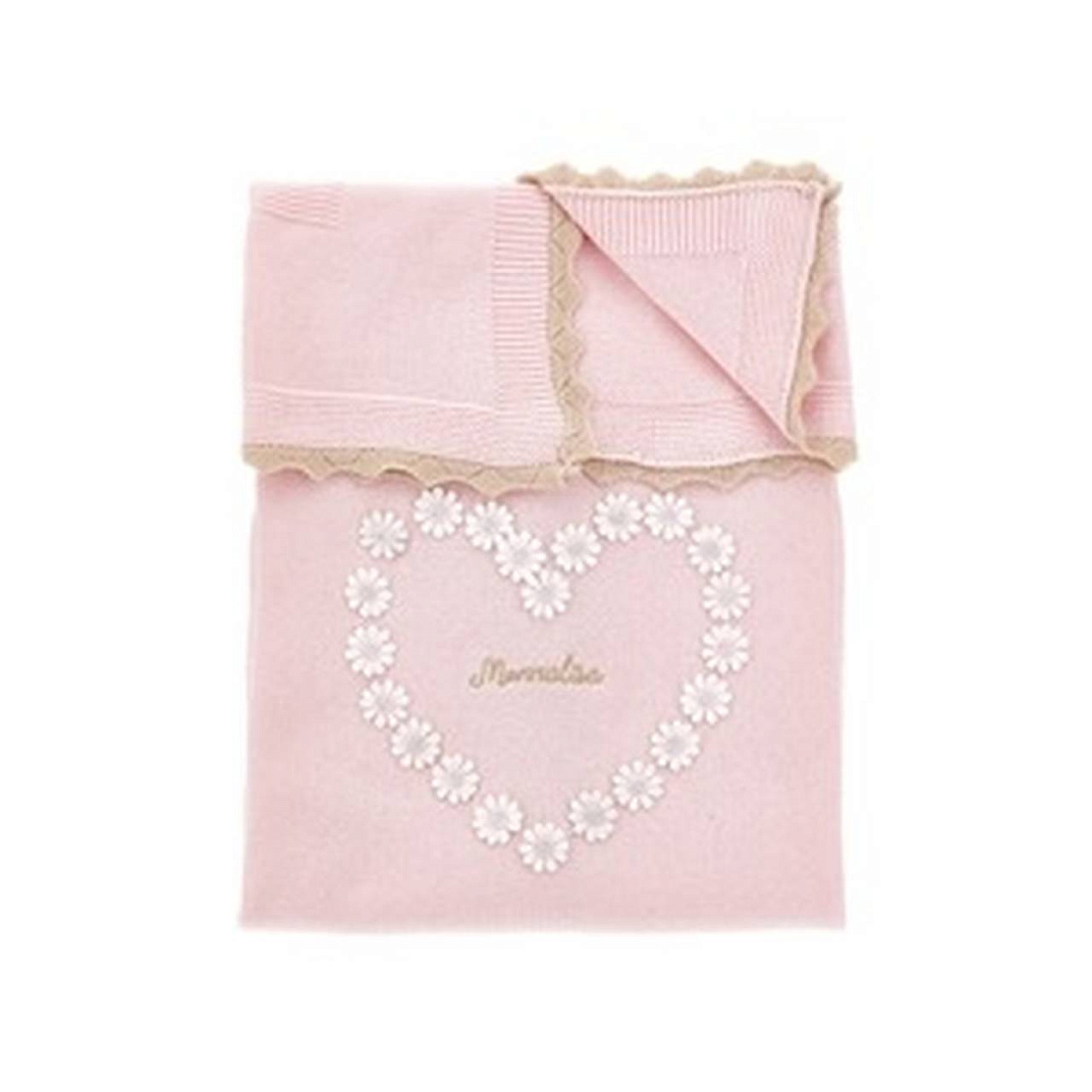 Одеяло детское выполнено в нежном розовом цвете, что придает ему мягкий и уютный вид. Материал визуально выглядит как трикотаж, приятный на ощупь, с аккуратной вязкой, что обеспечивает дополнительный комфорт для ребенка. Дизайн украшен декоративной отделкой по краю, выполненной в светлом бежевом оттенке, создающей изысканный контраст и подчеркивающей стиль изделия. На поверхности одеяла находится изящная аппликация в виде сердца, собранного из белых объемных цветов, что делает внешний вид особенно привлекательным для малышей. В центре сердечка вышита надпись, придающая изделию индивидуальность. Текстура материала мягкая, эластичная и подходит для ежедневного использования в детской кроватке или коляске. Одеяло детское легко впишется в интерьер детской комнаты, станет отличным выбором для заботливых родителей, стремящихся создать уют и тепло для своего малыша.