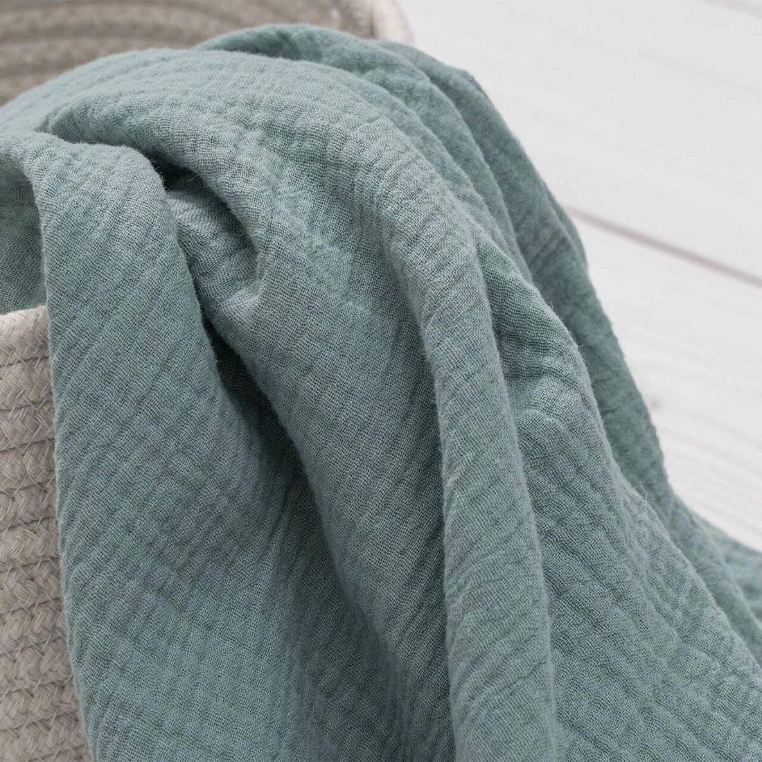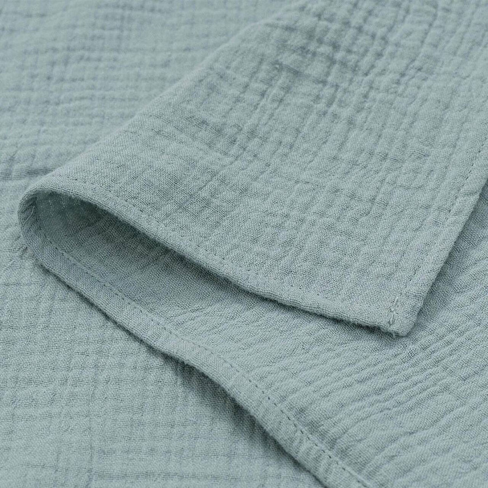 Ткань — премиальный жатый муслин высокого качества. Пеленки из жатого муслина более мягкие и сохнут гораздо быстрее, чем обычные. Такая ткань хорошо пропускает воздух, в них комфортно в любую погоду благодаря терморегулирующим свойствам.