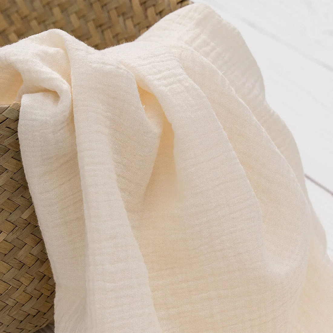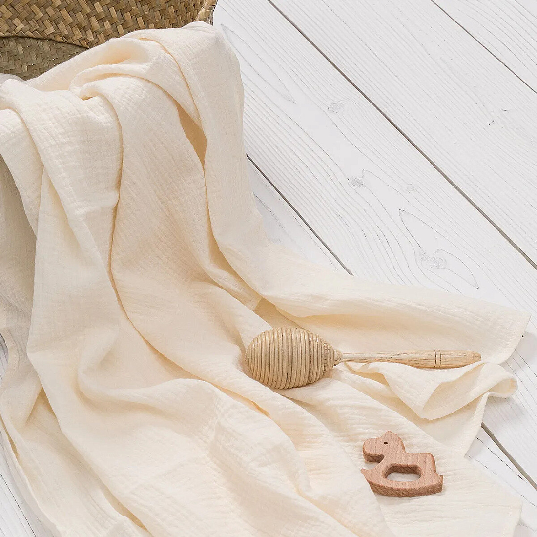 Ткань — премиальный жатый муслин высокого качества. Пеленки из жатого муслина более мягкие и сохнут гораздо быстрее, чем обычные. Такая ткань хорошо пропускает воздух, в них комфортно в любую погоду благодаря терморегулирующим свойствам.