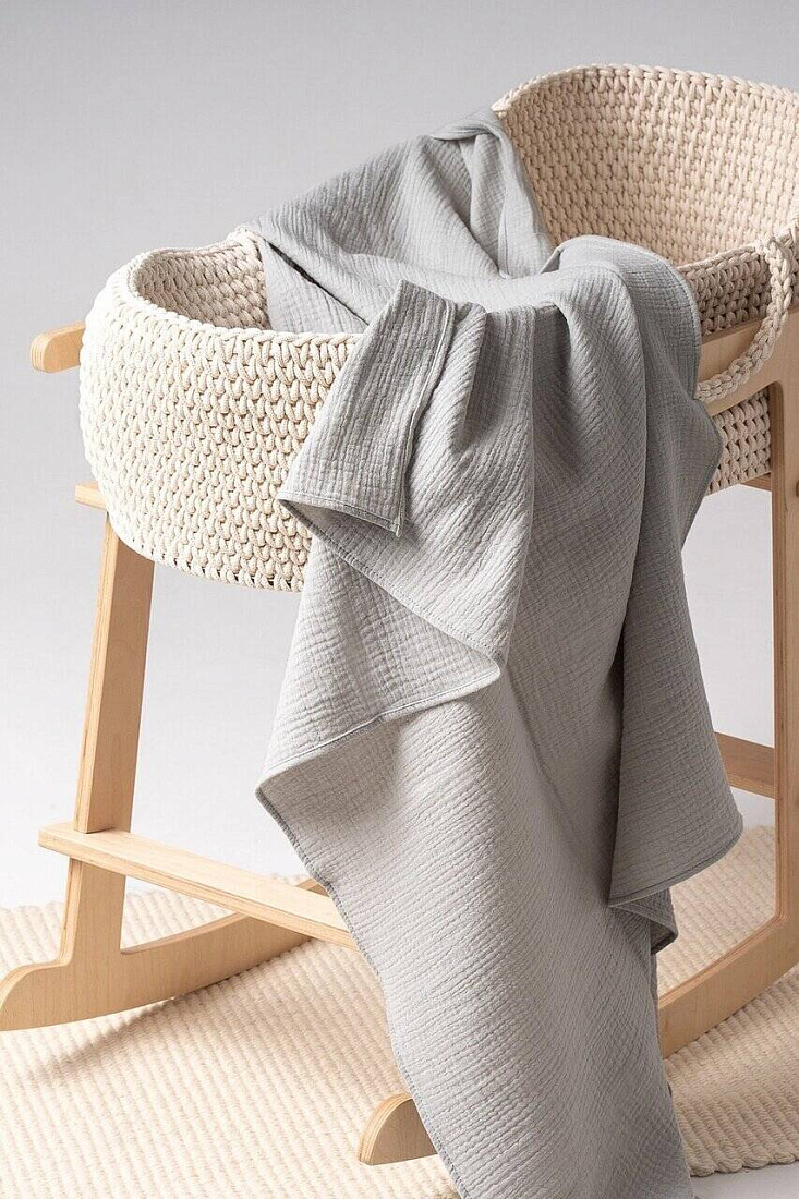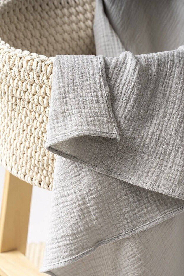 Ткань — премиальный жатый муслин высокого качества. Пеленки из жатого муслина более мягкие и сохнут гораздо быстрее, чем обычные. Такая ткань хорошо пропускает воздух, в них комфортно в любую погоду благодаря терморегулирующим свойствам.