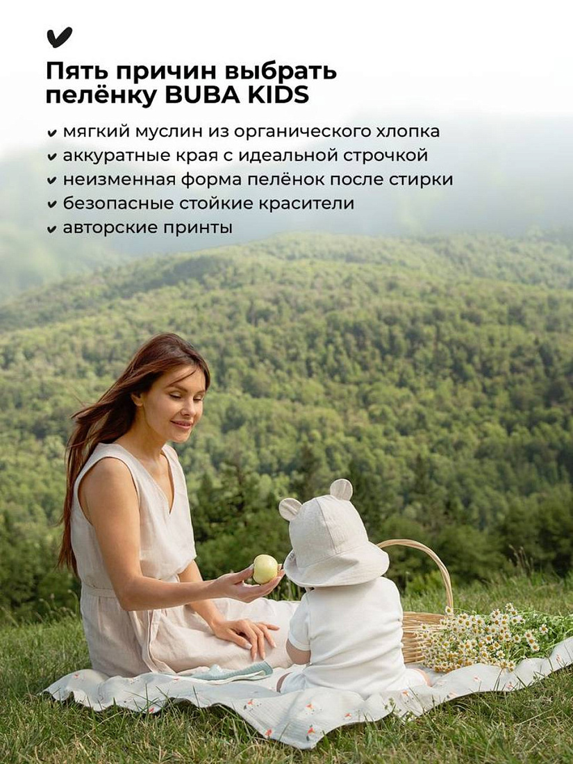 Пелёнка муслиновая BUBA KIDS, 115х115, цв. Горный орёл