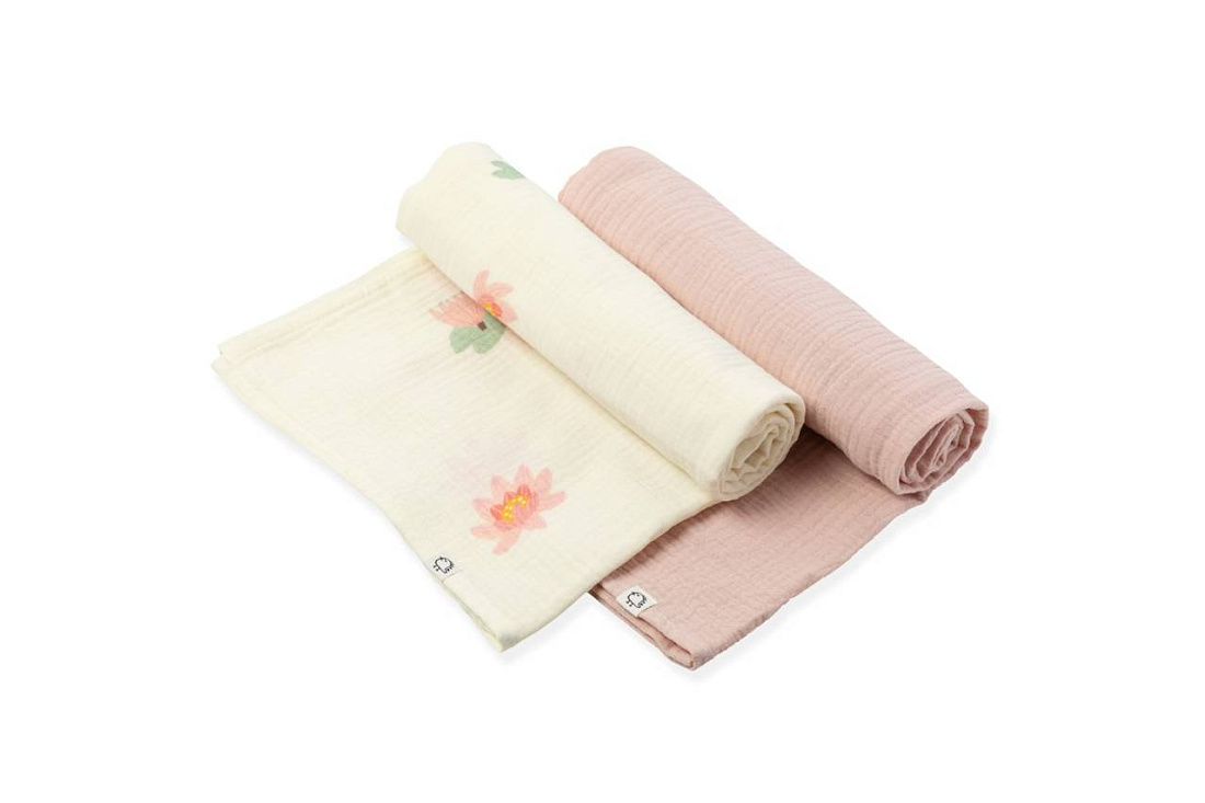 Пелёнки муслиновые BUBA KIDS, 2шт., 75х115, цв. кувшинка розовая/пудра