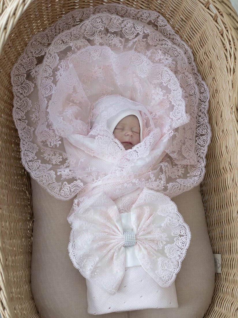 Уникальный дизайн, роскошное кружево и нежные расцветки идеально подходят для выписки малыша из роддома.