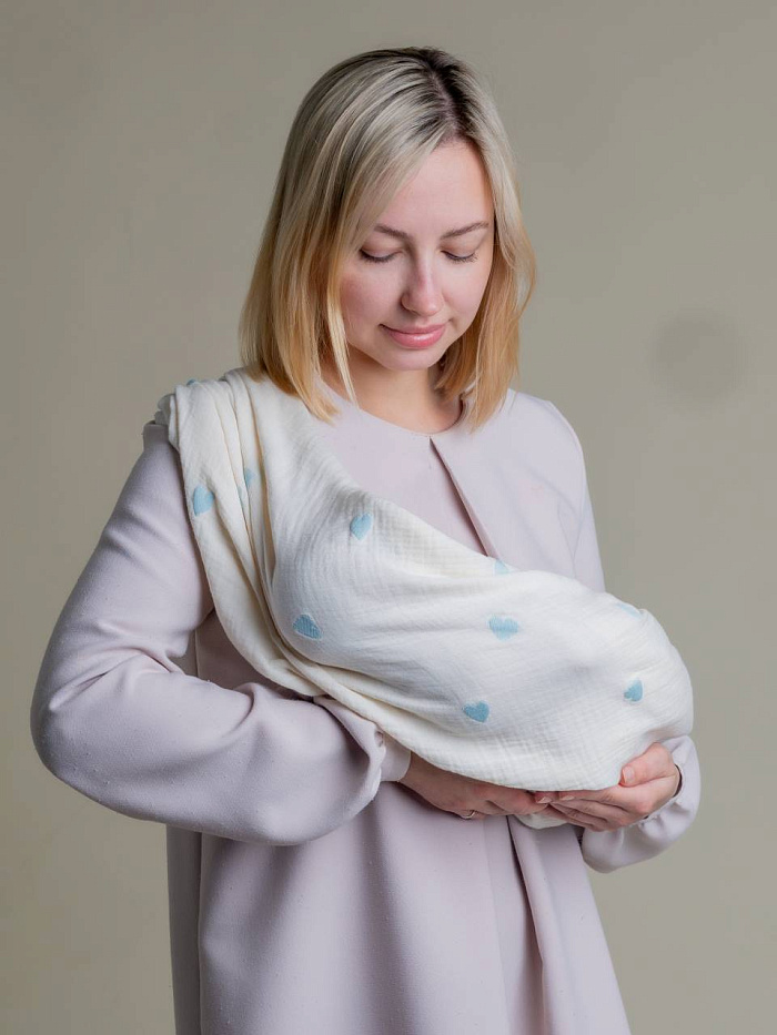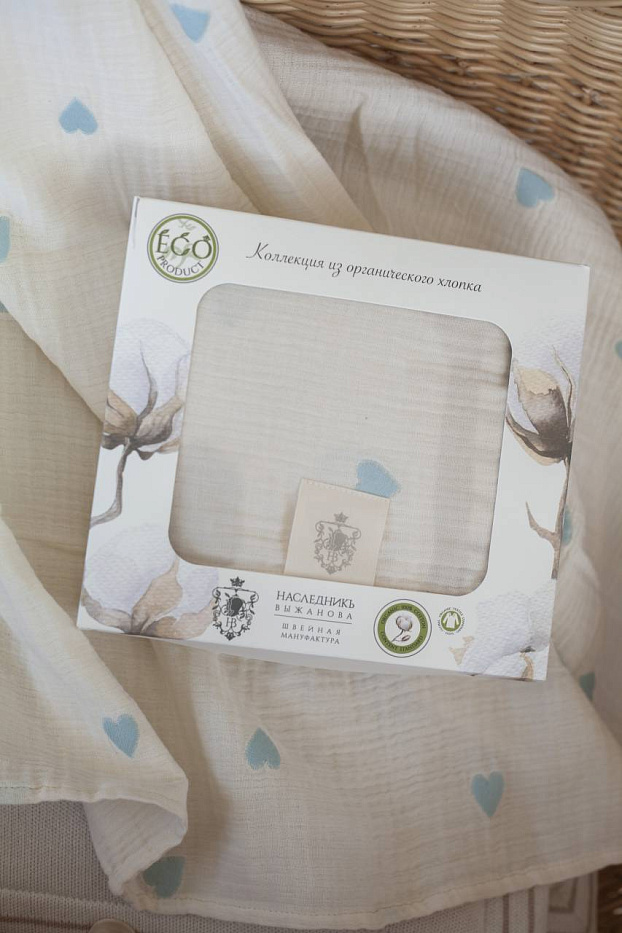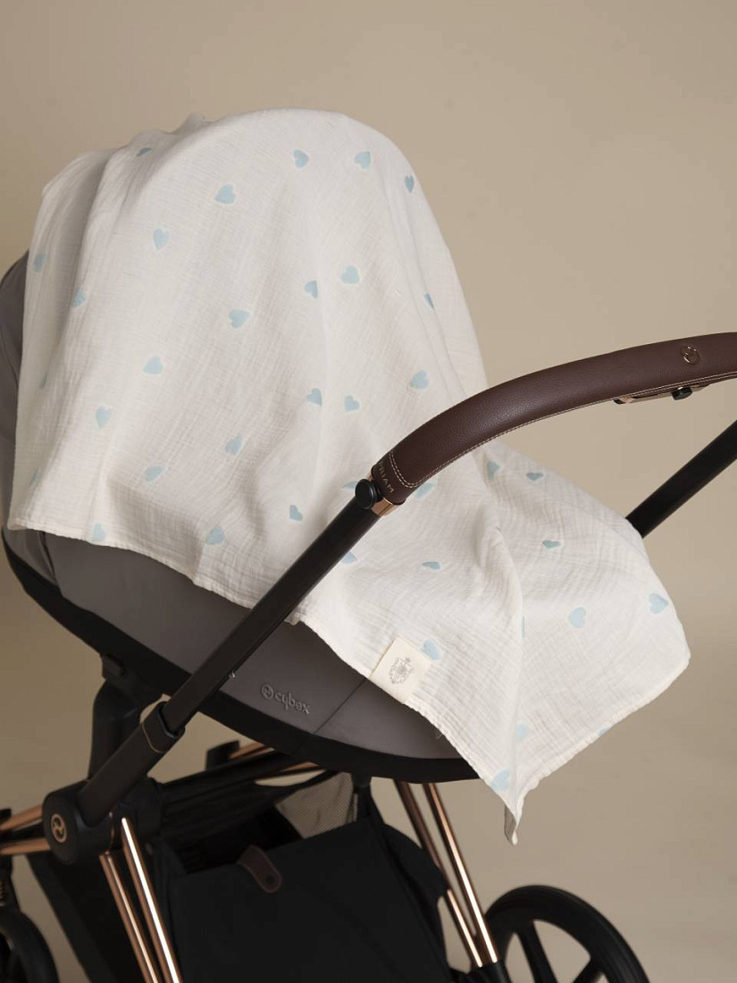 Плед - пеленка "Сердечки" 110х110, цв. голубой