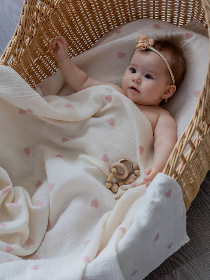 Плед - пеленка "Сердечки" 110х110, цв. розовый