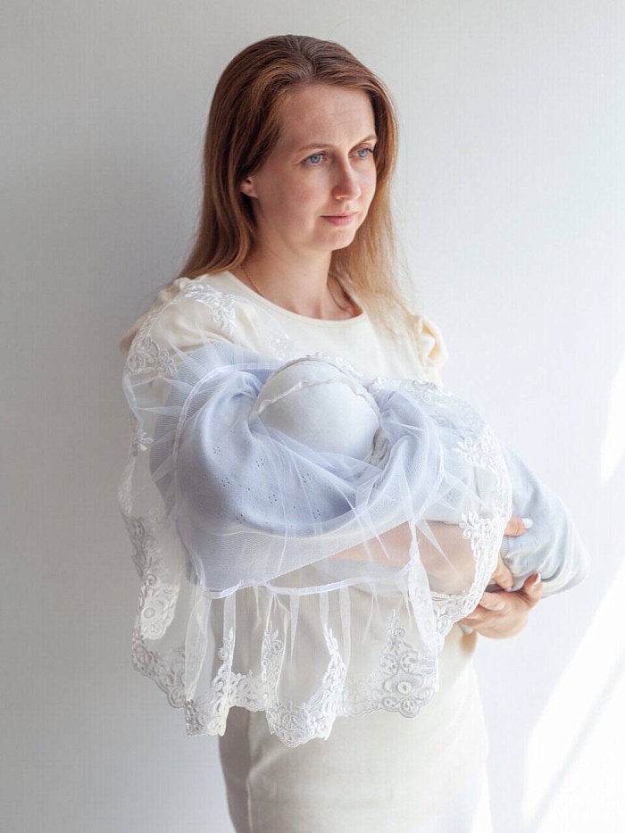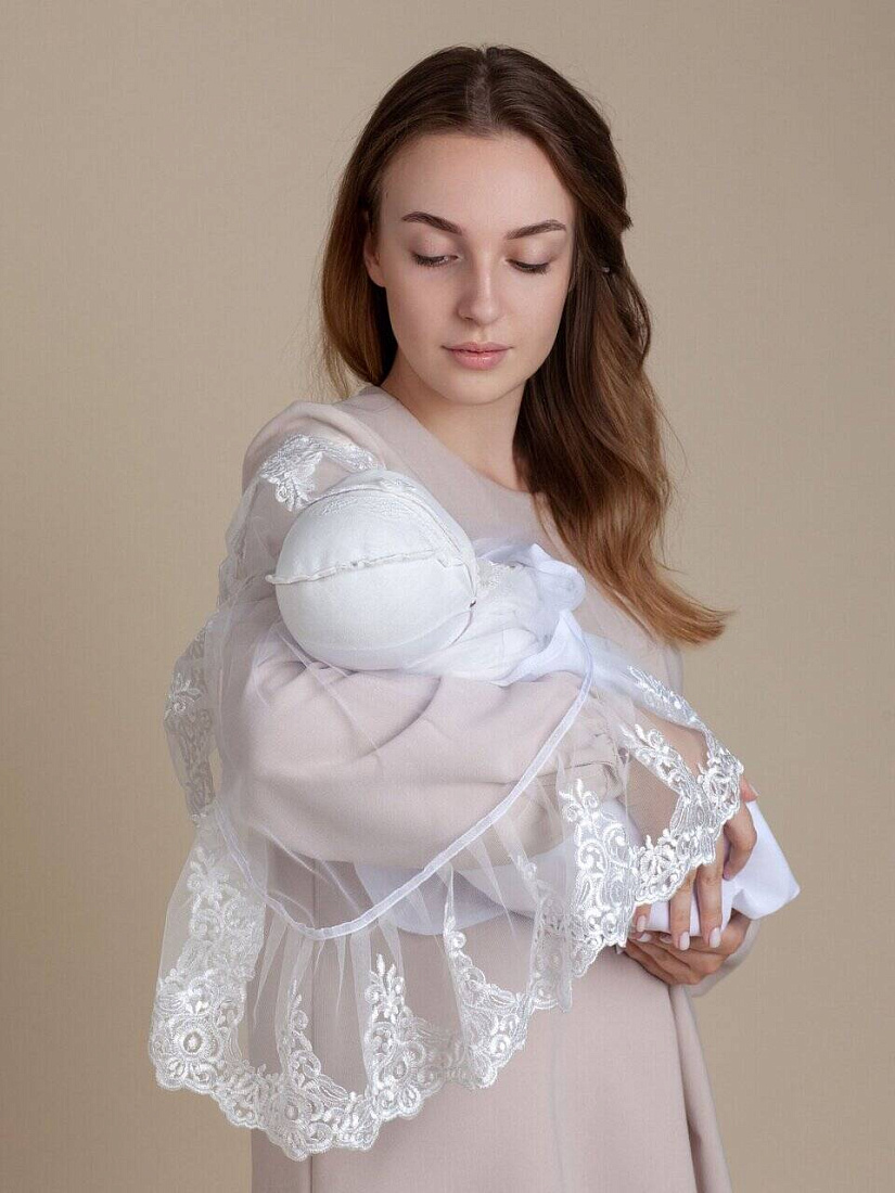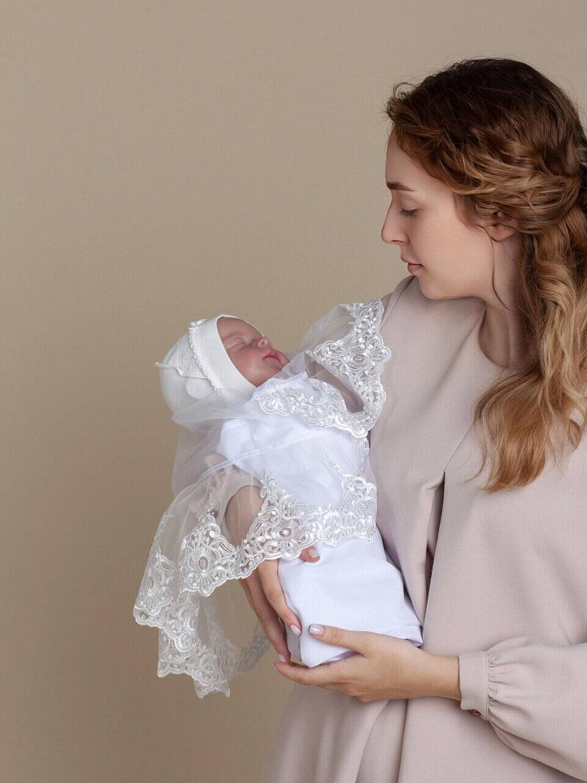 Уголок на выписку выполнен из 100% нежнейшего хлопка. Декорирован изящным кружевом. Дополнит образ на выписку с любым пледом, конвертом.