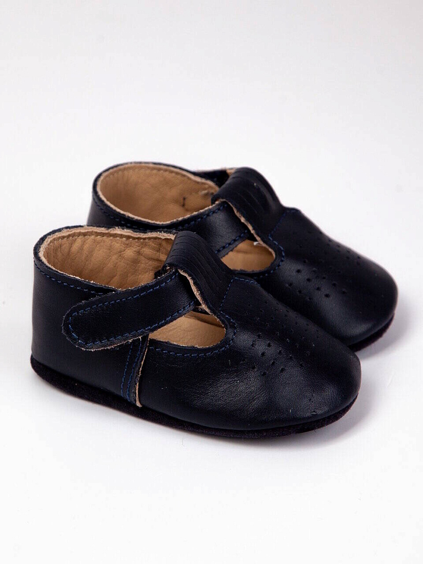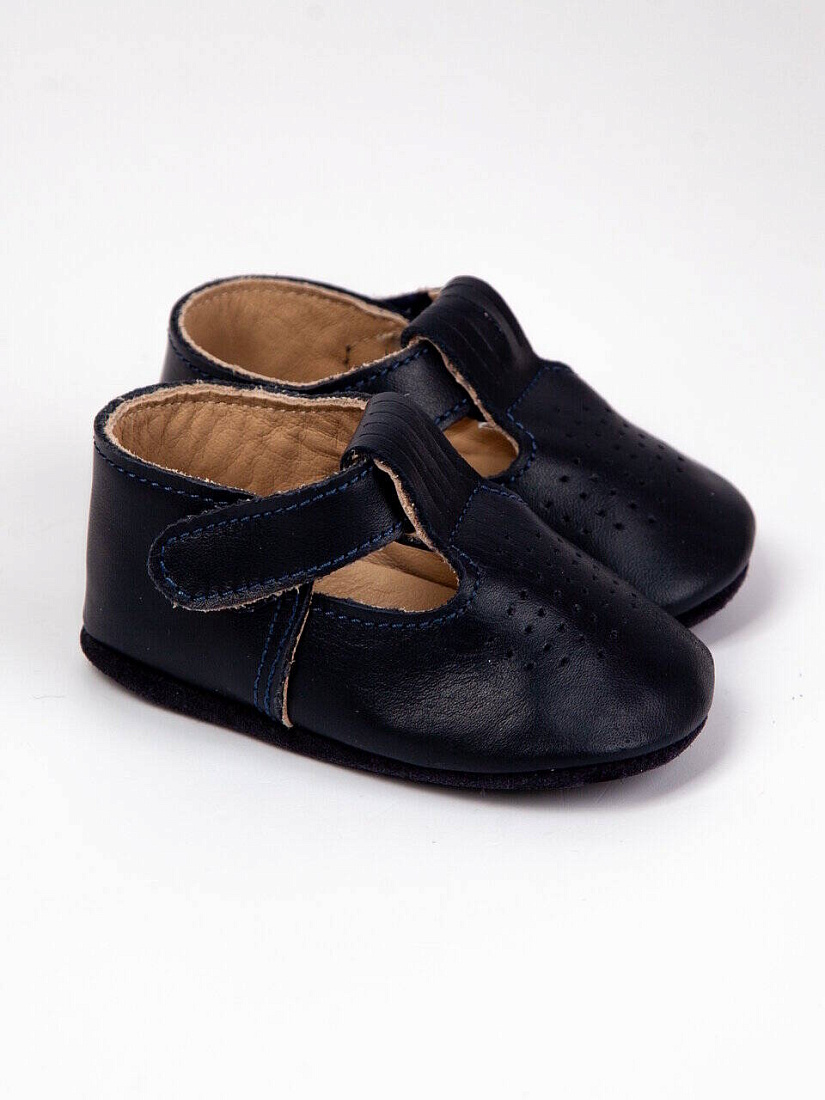 Пинетки кожа, цв. т.синий, р. 1 (3-6 мес)