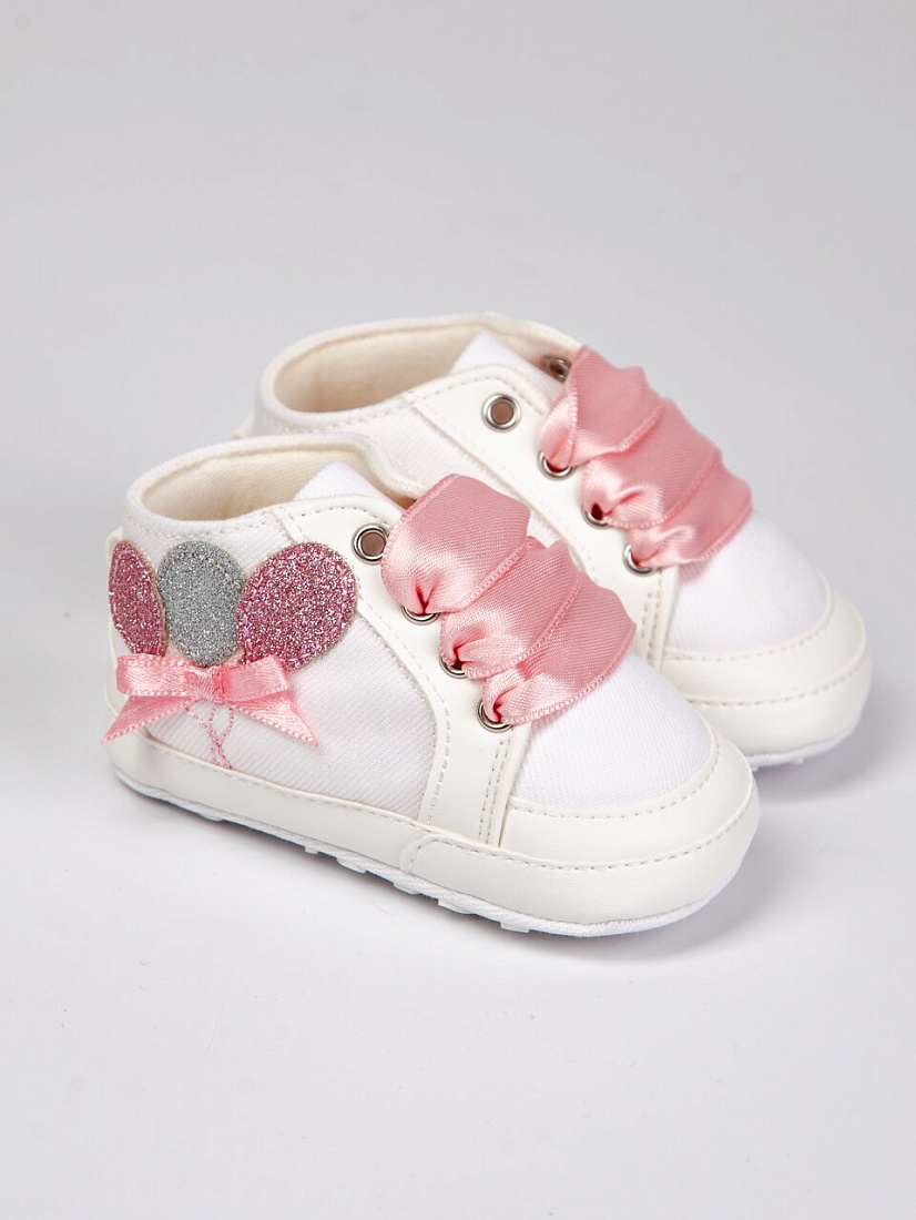 Пинетки-кроссовки, цв. белый/розовый, р. 1 (3-6 мес)
