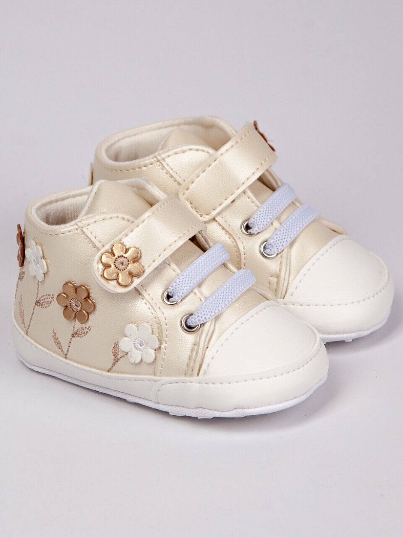 Пинетки с цветочками, цв. бежевый, р. 1 (3-6 мес)