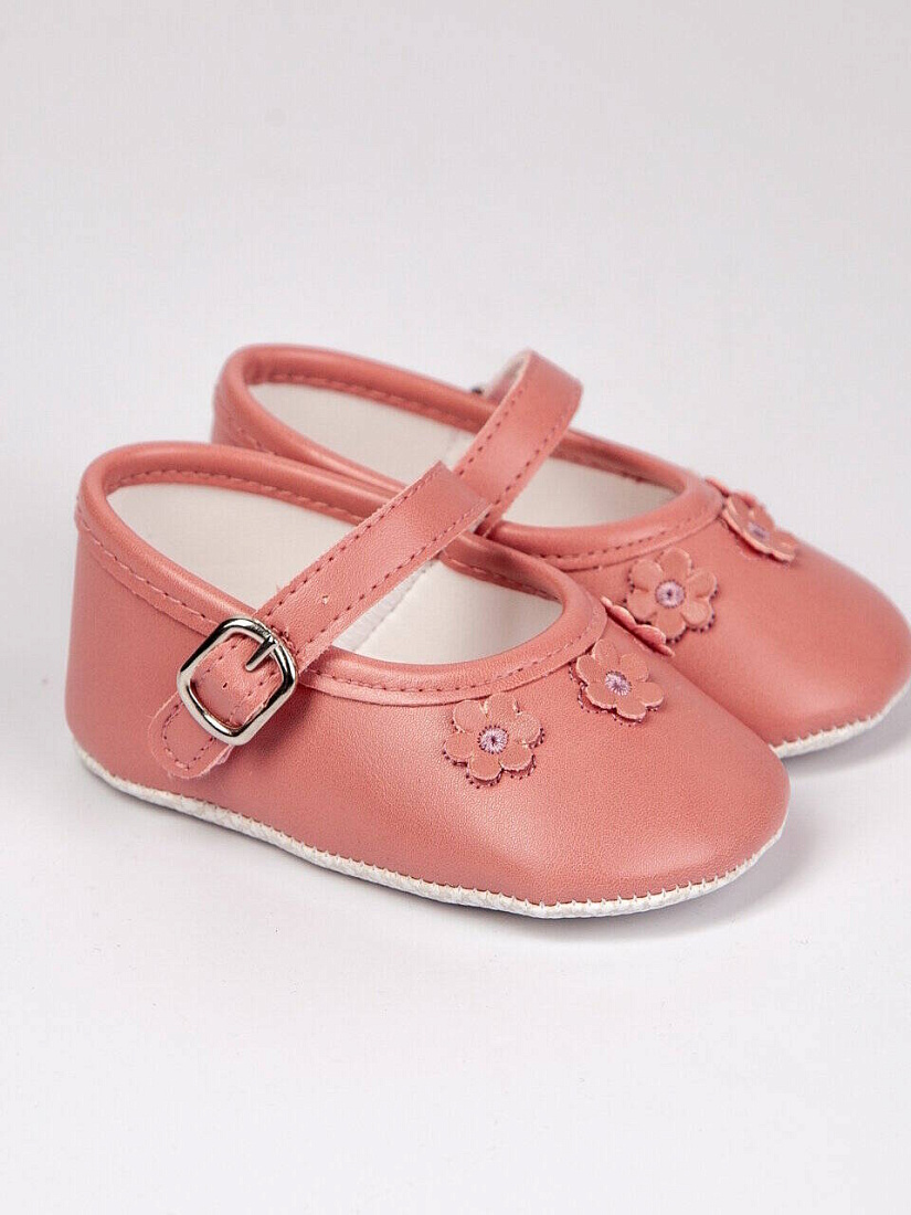 Пинетки с цветочками, цв. пудра, р. 1 (3-6 мес)
