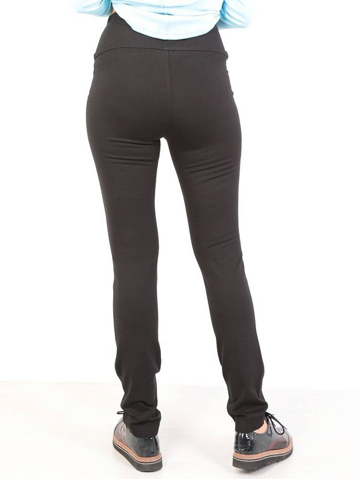 Теплые зимние брюки из джерси на флисе. Эластичные, хорошо тянутся, не теряют форму. Силуэт брюк слегка зауженный, без карманов.
