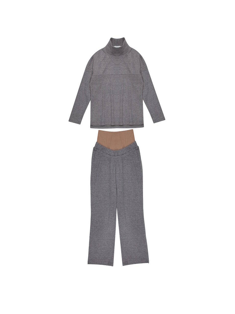 Костюм из тёплого трикотажа, состоит из худи и брюк. Худи с воротником стойкой, по полочке кокетка с молнией для кормления. Брюки с двойной вставкой, первая - пояс под живот, вторая из вискозы, ее можно впоследствии убрать.