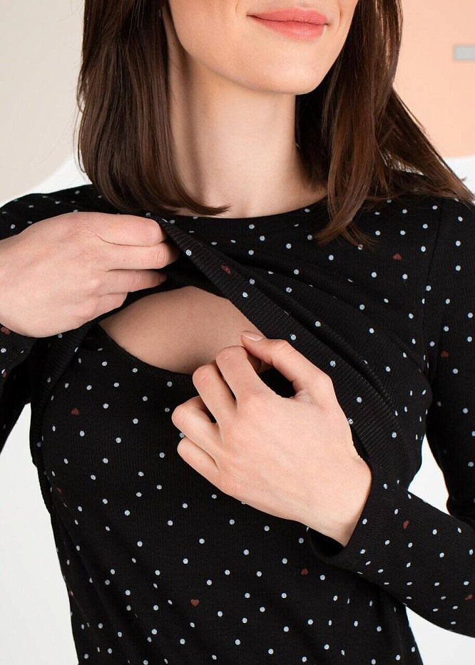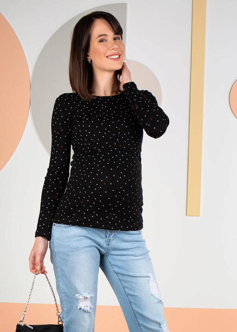 Лонгслив "Джуниор" для беременных и кормящих, цв. черный, рис. горох, р. 42
