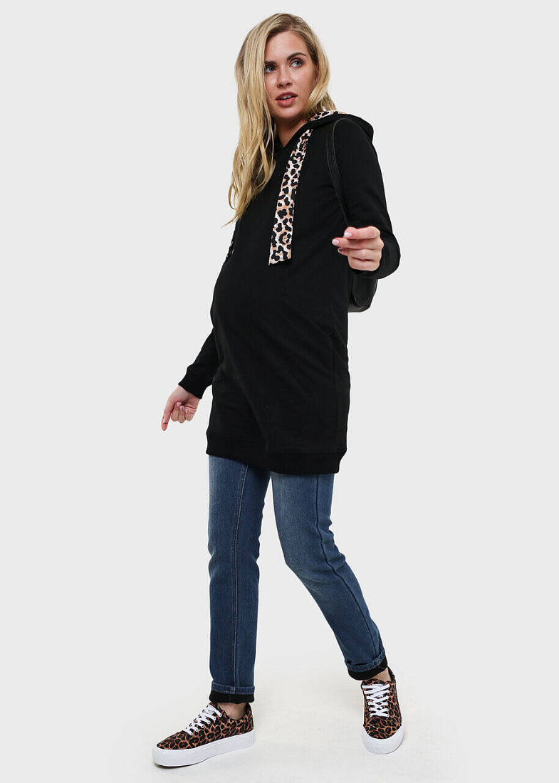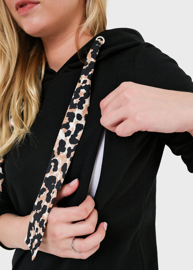Толстовка утепленная "Лео" для беременных и кормящих, цв. чёрный, р. 42
