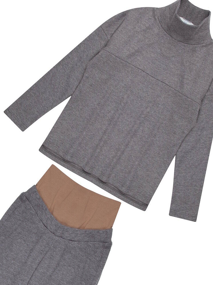 Костюм из тёплого трикотажа, состоит из худи и брюк. Худи с воротником стойкой, по полочке кокетка с молнией для кормления. Брюки с двойной вставкой, первая - пояс под живот, вторая из вискозы, ее можно впоследствии убрать.