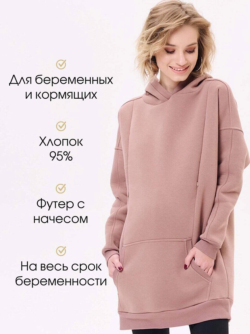 Худи для беременных, с начесом, цв. кофейный, р. 46