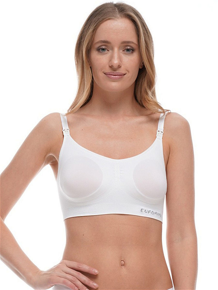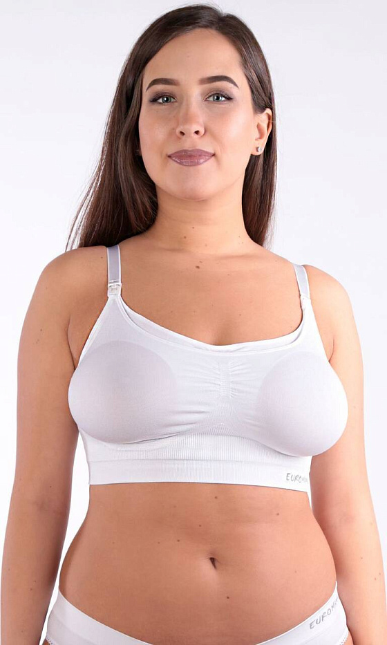 Бесшовный топ с дополнительной поддержкой груди оптимален для кормящей мамы. Он нежно облегает грудь, не давит и не стесняет движений. Чашка бюста легко отстегивается и застегивается. Лямки регулируются по необходимости.