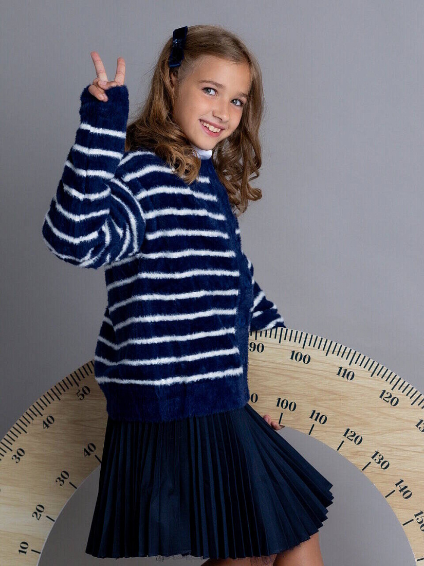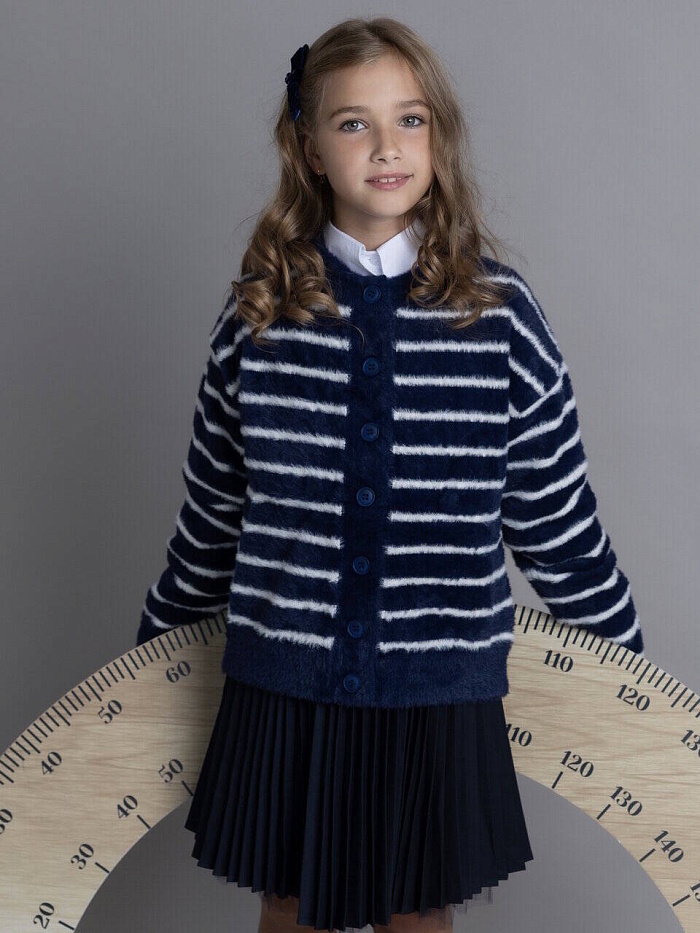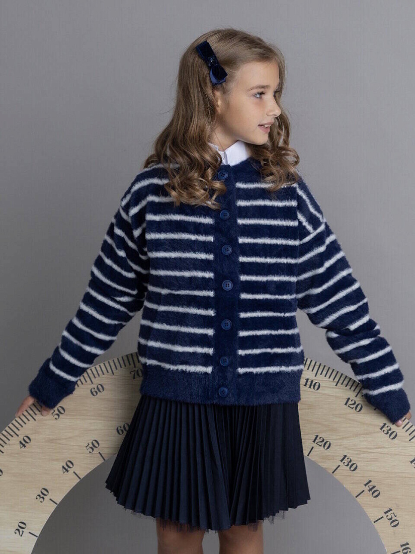 Кардиган в полоску, цв. т.синий/экрю, р. 152