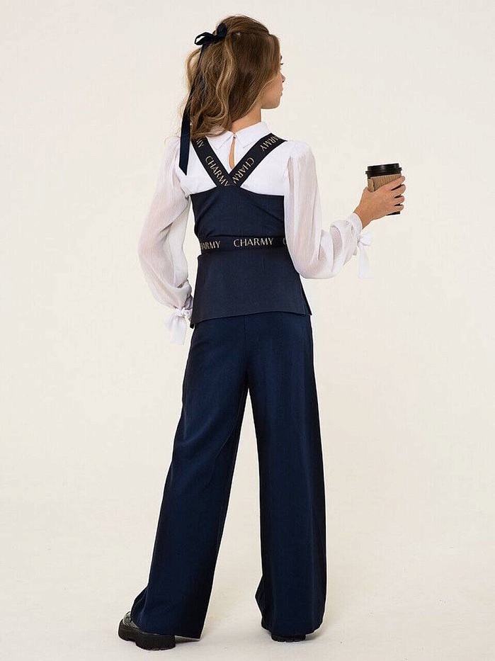 Жилет CHARMY из джерси. Пояс и бретели выполнены из эластичной ленты с брендовой вышивкой. Пояс застегивается на пряжку. Разрезы в боковых швах.