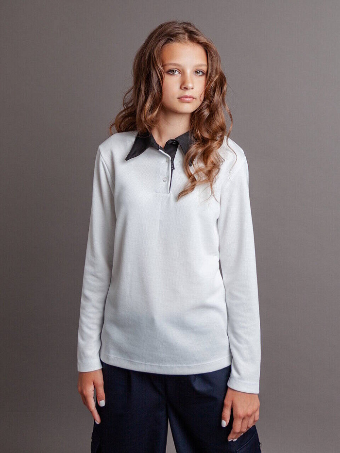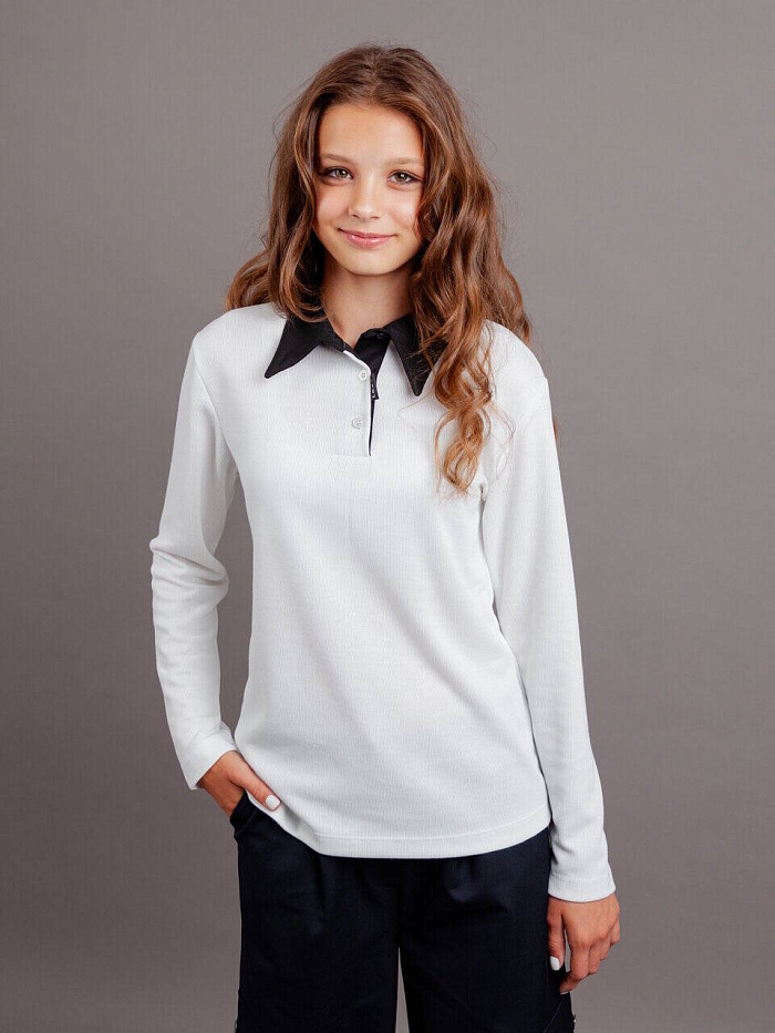 Рубашка-поло трикотаж, цв. белый, р. 10-11