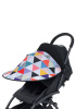 - Так как капюшон крепиться на резинке к коляске, вы сможете регулировать положение козырька по необходимости.