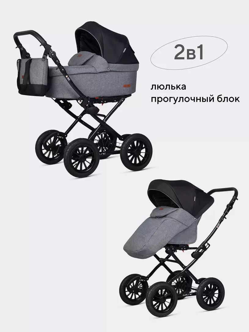 Коляска 2в1 "BELLA LUX CLASSIC" (2025), цв. т.серый