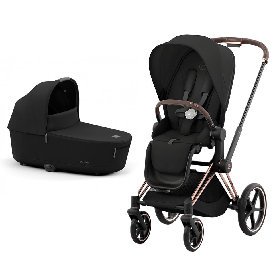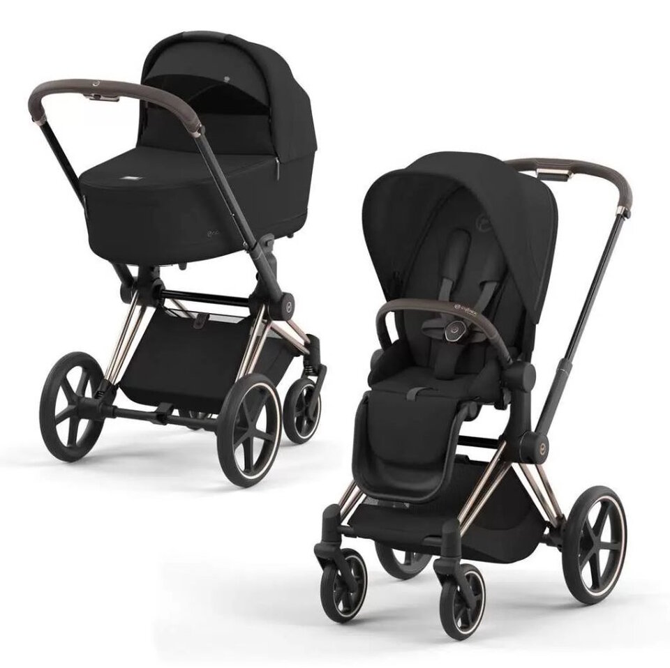 Коляска 2 в 1 Cybex Priam IV шасси Rosegold, цв. Sepia Black