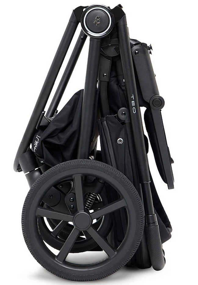 коляска дополнена функцией автоскладывания - просто нажмите кнопку и слегка подтолкните подножку в обратную сторону. Модель складывается автоматически сразу вместе с блоком, независимо от его положения (по ходу/против хода).