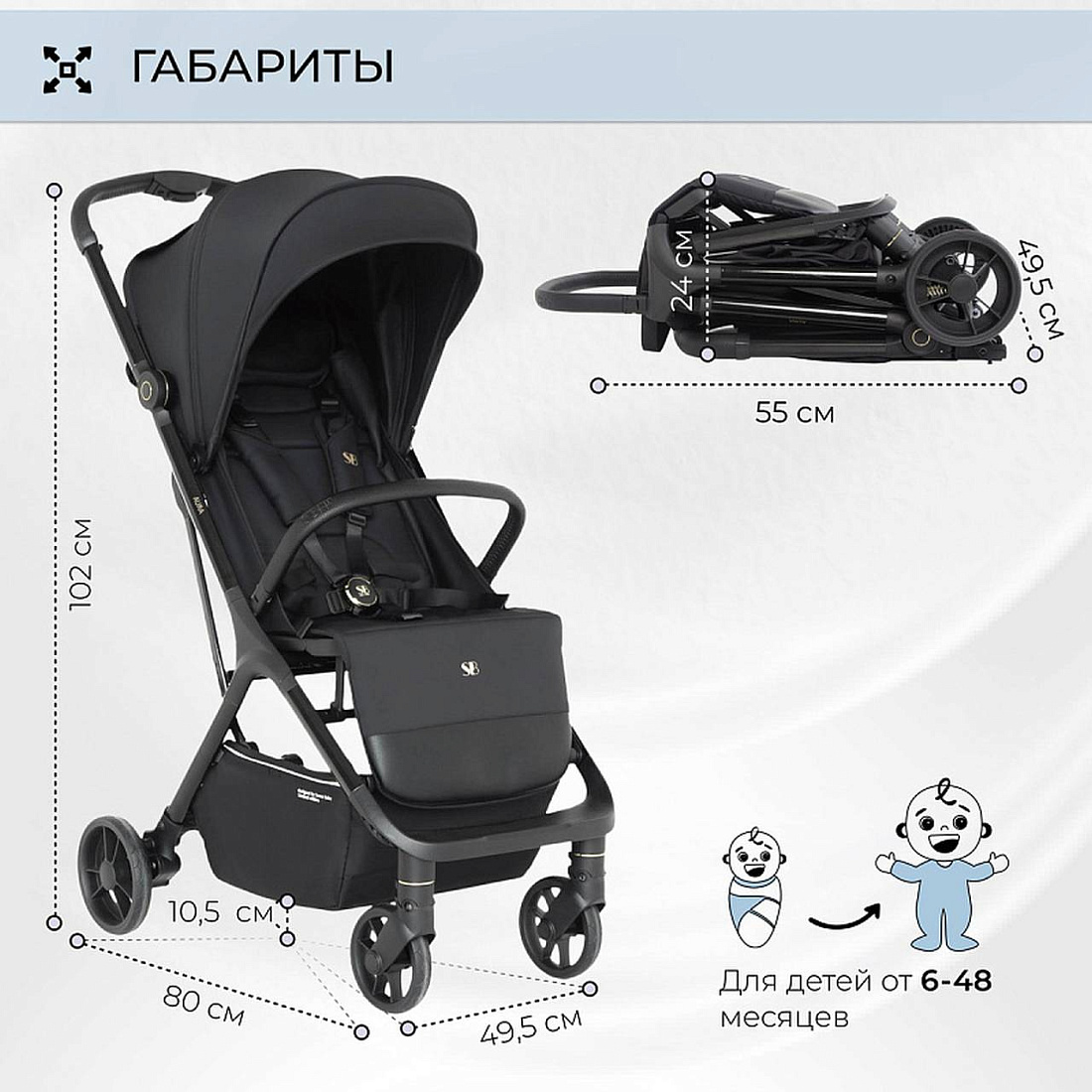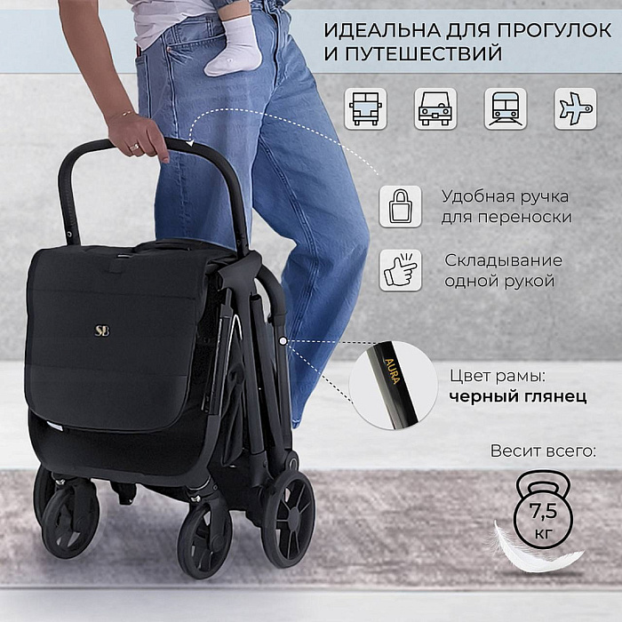 Лёгкая прогулочная коляска Aura- стильная, маневренная, легкая коляска, которая станет незаменимой помощницей в путешествиях и дальних поездках.